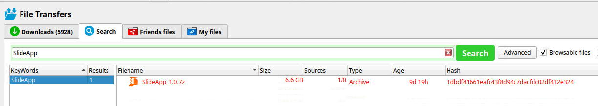 RetroShare -> Files -> Search -> SlideApp 😊