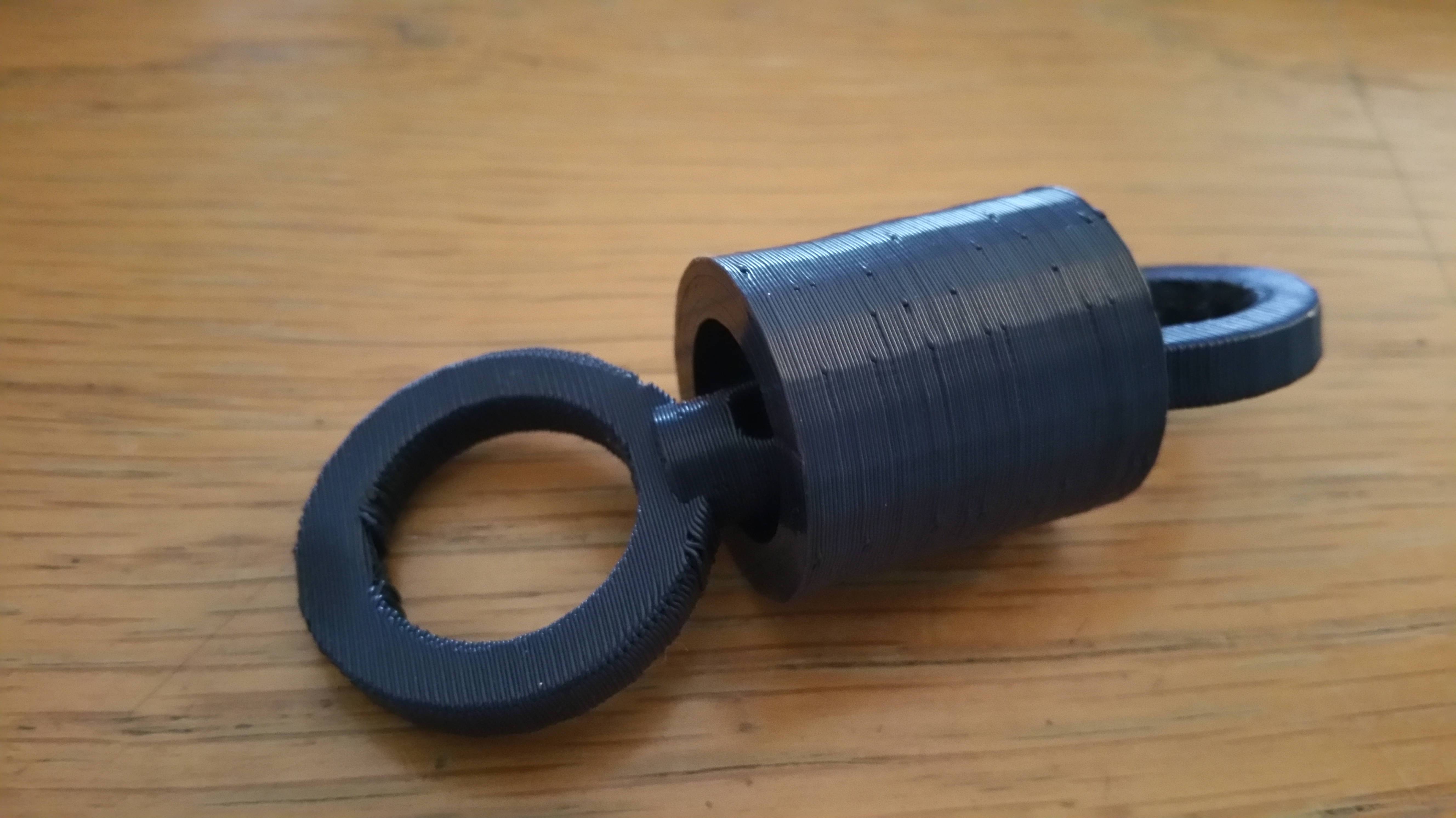 Greetings all. I just wanted to stop by and introduce a new toy I worked up. It is an Ice lock, much like the ones you are familiar with, except 3D printed in ABS Plastic. The lock is very strong, actually I don't think it could be broke by hand. I get about 15-25 Min before the lock releases generally. It works amazing in conjunction with a darlex sleep sack. Here's how i use it: