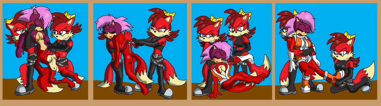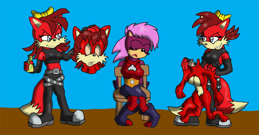 Basicly, the twins drug the first fox and force him into another fox suit with a ball gag, and glue a fox hood on fin. The both turn the first fox to the police and collect the reward.