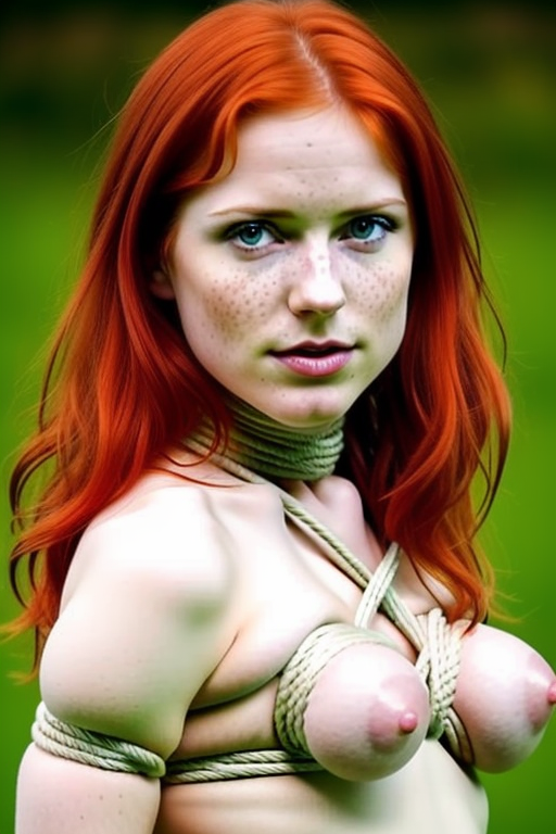 Quote: a photo of a thin irish red headed woman with freckles, nude, naked, (detailed face), masterpiece, (fullbodyshot:1.1), (flat chest:1.4), (small breast:1.4), ((good anatomy:1.2)), detailed nipples, detailed breasts, ((breast bondage)) <lora:BDSMClothing-v1-3:0.4> <lora:ballGag2-000003:0.4> <lora:agpt_europeanDollLikeness_v1:0.4> <lora:breast_bondage_v1:0.4>