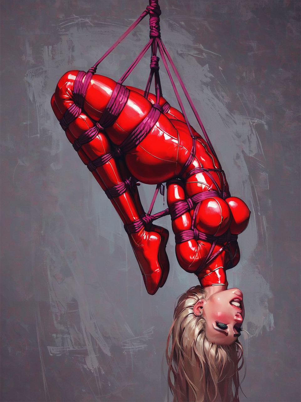 At least 3 LoRAs? PVC, hogtie and suspension? The proportions are completely off, but the bondage is quite reasonable!