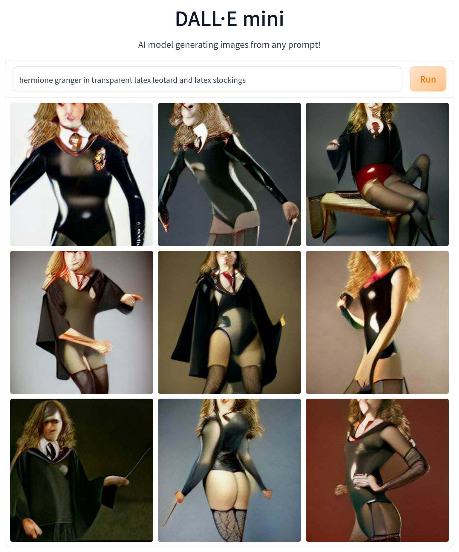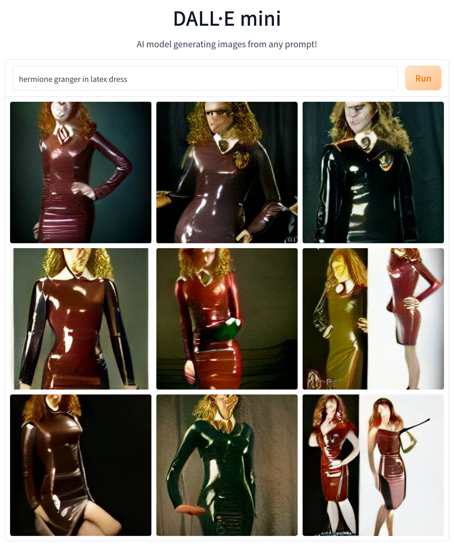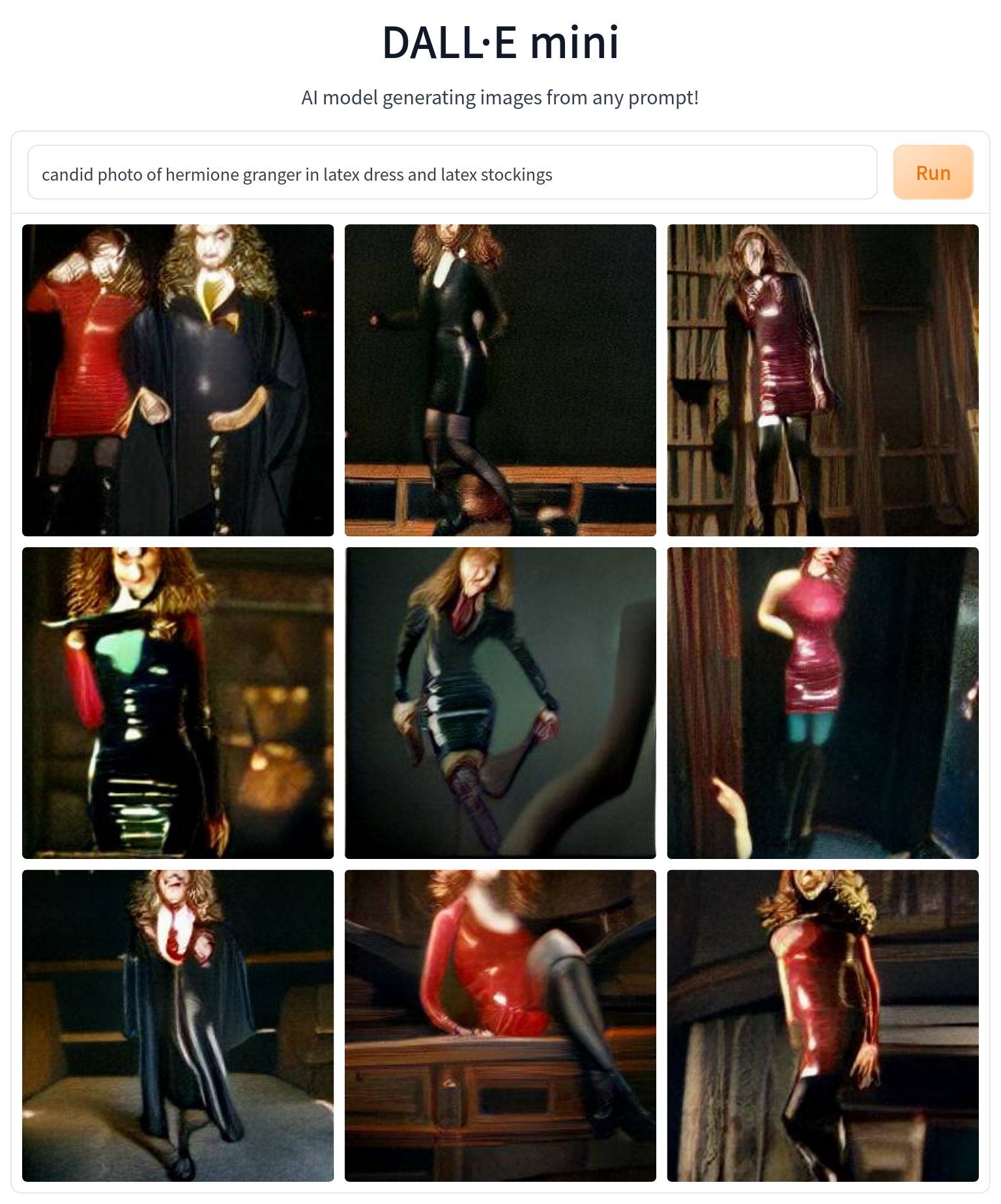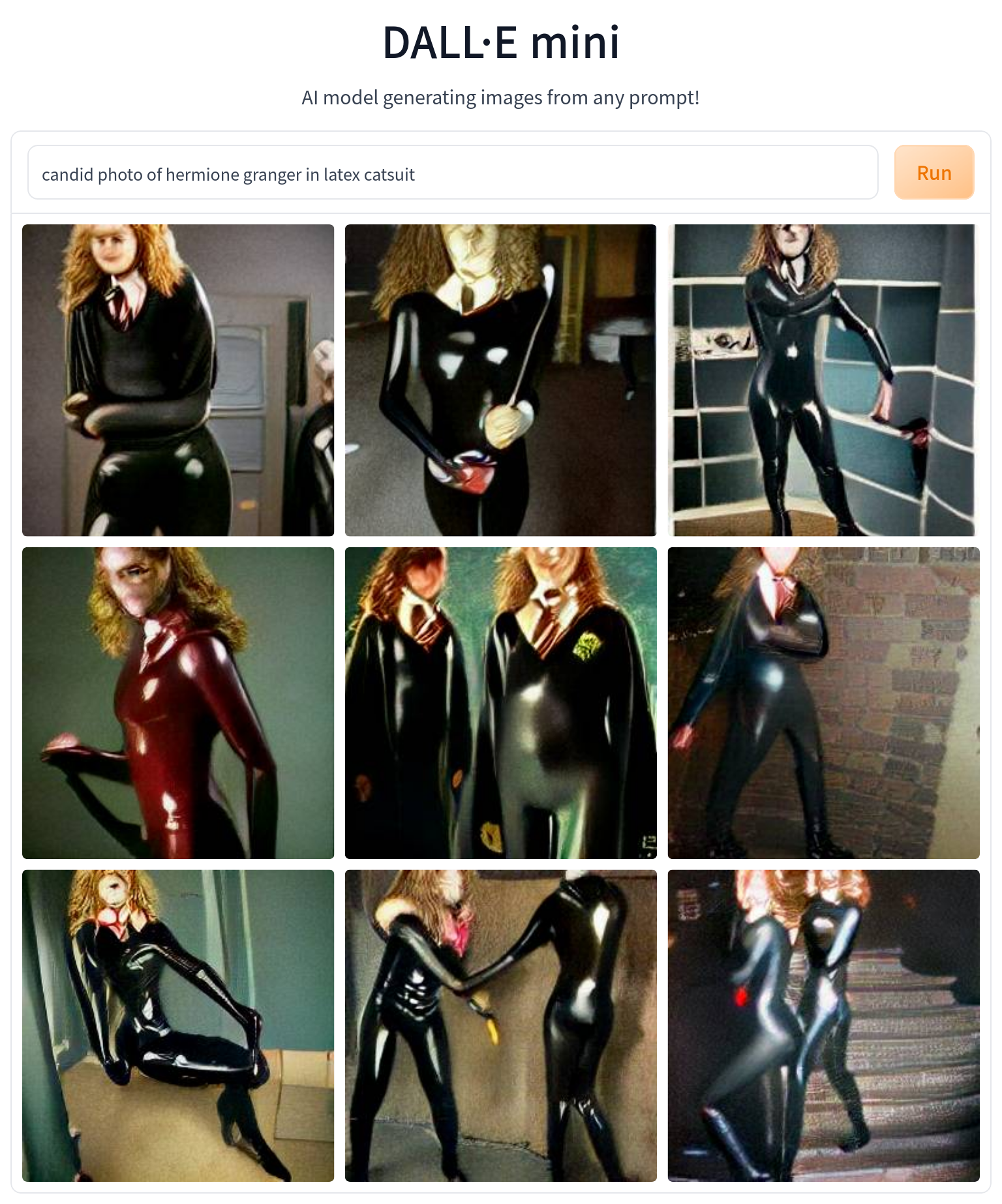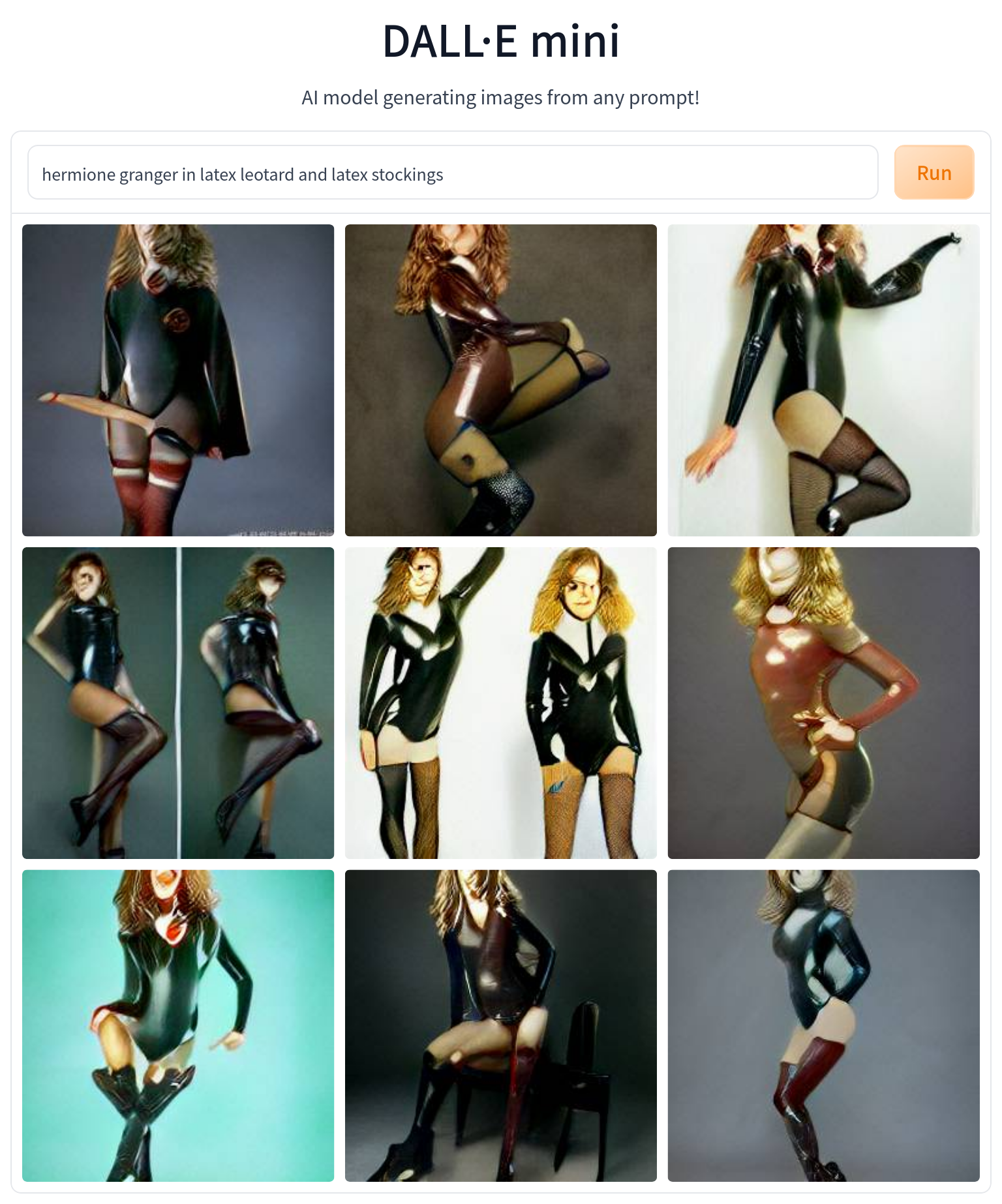 The mini model is definitely not powerful enough for realistic faces. What about... oil painted portrait of Emma Watson in latex leotards, dresses and corsets?