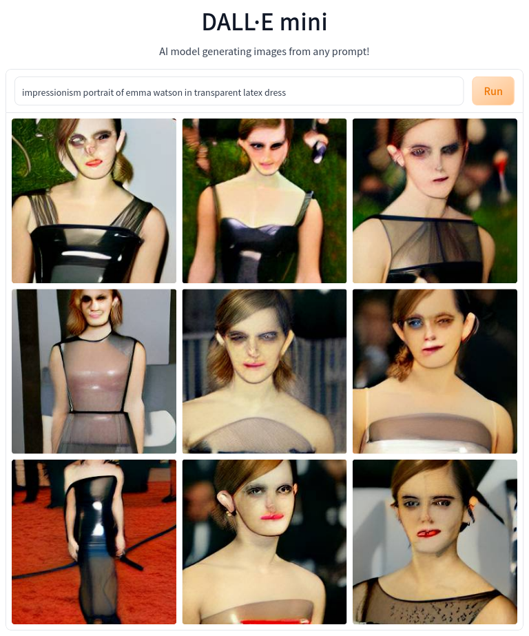 dallemini_impressionism portrait of emma watson in transparent latex dress-01.png    Rather no.