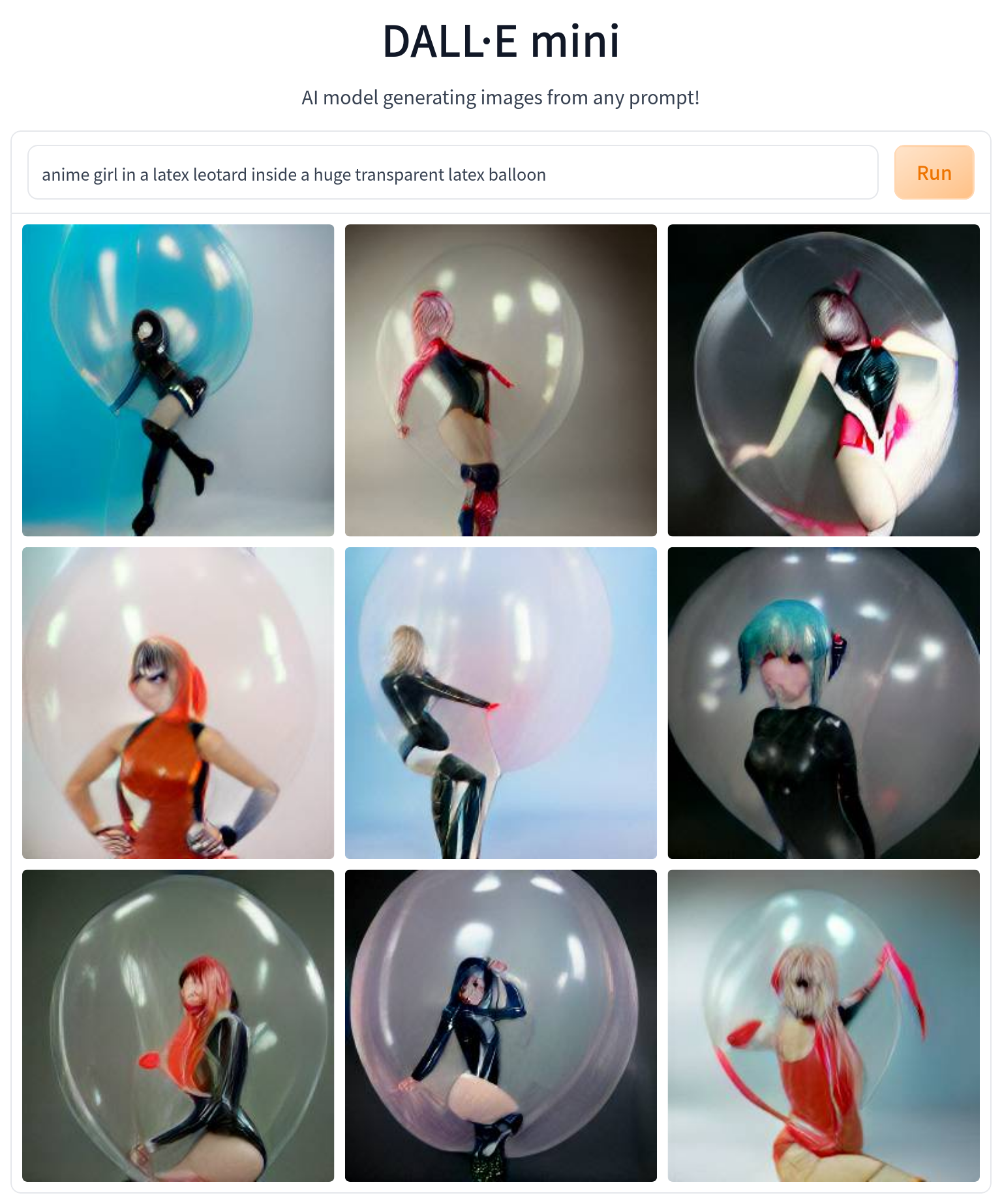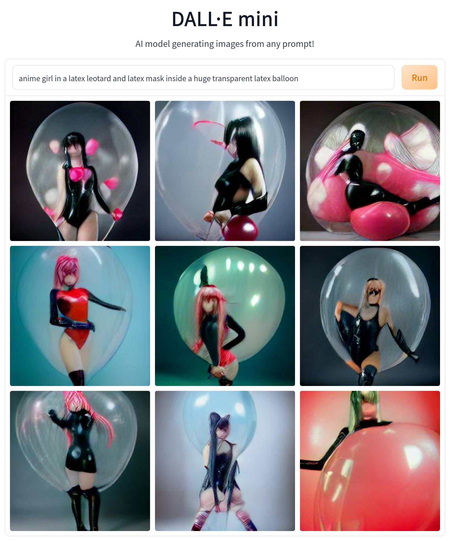 anime girl in a latex leotard inside a huge transparent latex balloon
