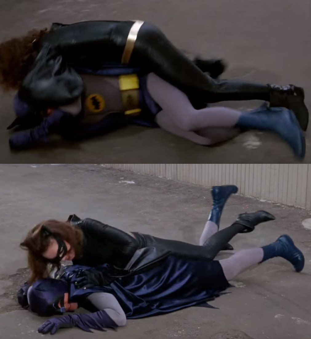 Yvonne Craig as Batgirl (the horse-riding scenes in 'The Sport of Penguins', good grief that is obvious).