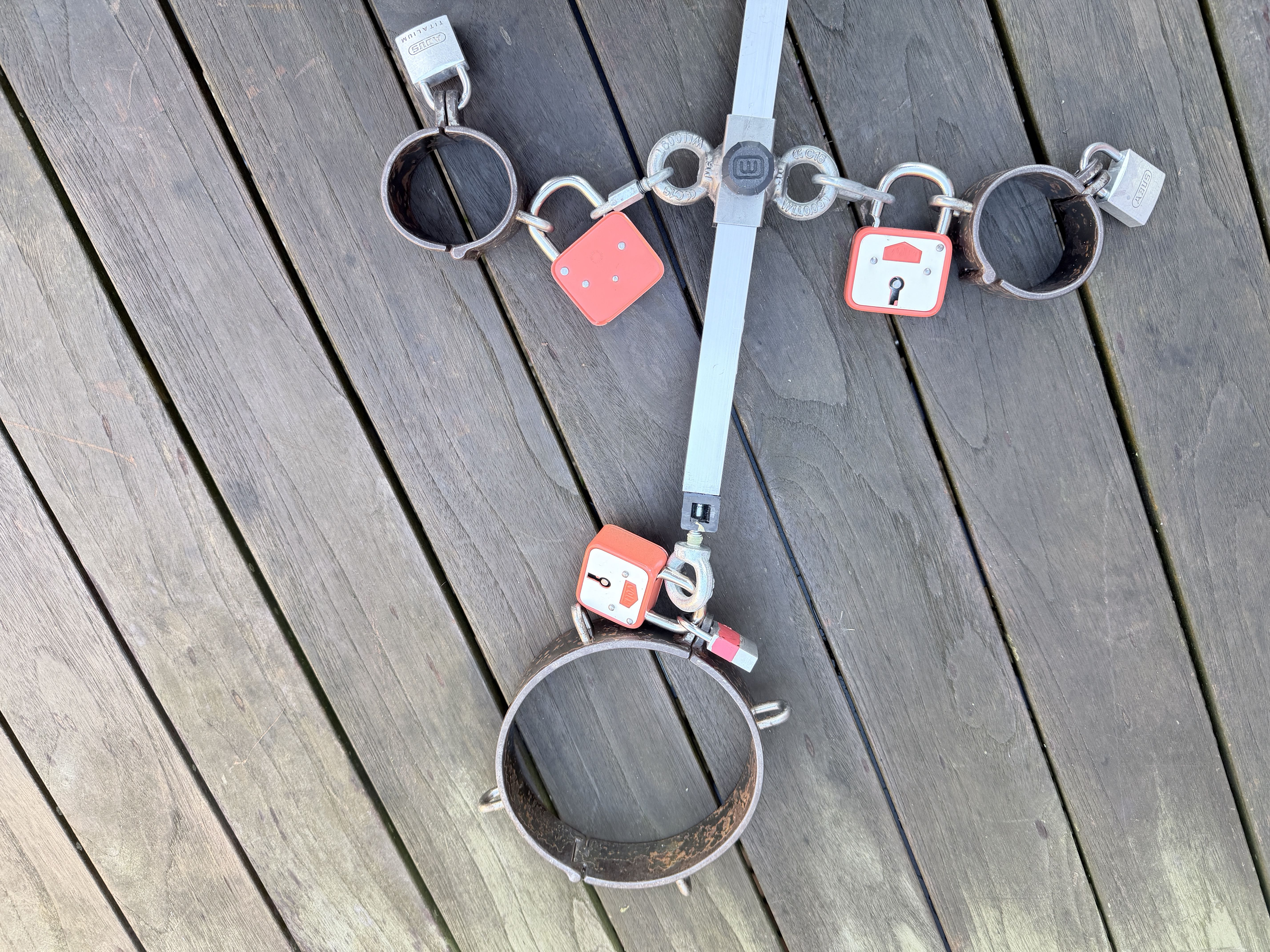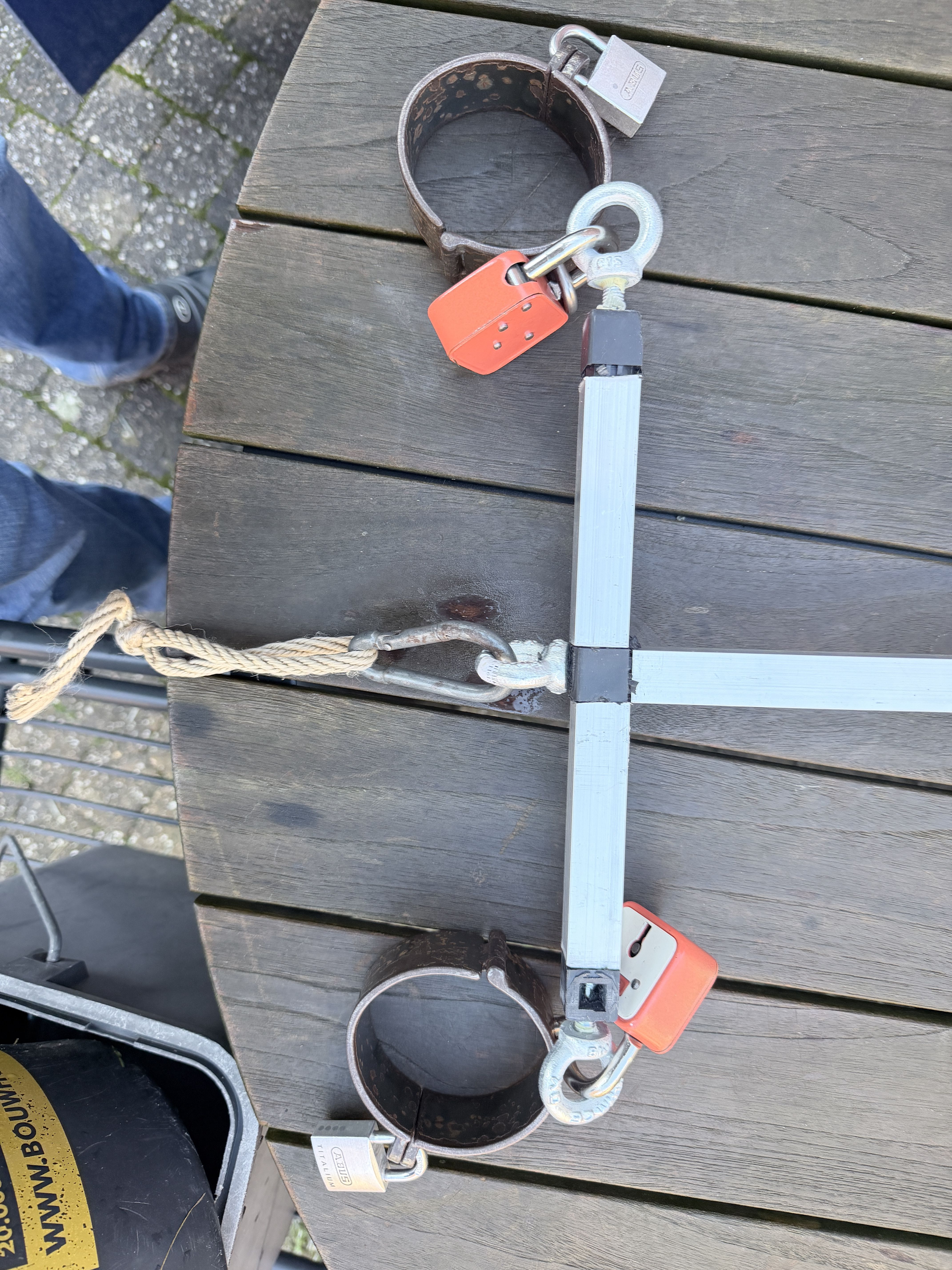 For this, I use a metal rod that I made myself. I had searched online for an extended version that could attach my feet, hands, and neck.