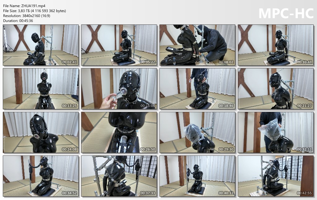 on the cam site https://chaturbate.com/b/latexslaafboy2/ in a full latex bondage suit, timer box, and gag.