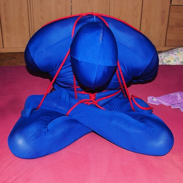 Some thoughts. - This pose is called "Yoganidrasana" or yogic sleep pose (https://en.wikipedia.org/wiki/Yoganidrasana) - Another name for it is Pashinee/Pashini/Pasini Mudra, what can be translated as "bound by the noose" (see where I'm going?) - The psychological benefits of this mudra are to release from the unconscious animal conditioning that is being afraid of locked up or chained up. - This boy looked like me (actually, the resemblance is quite ... stunning ...) when I was ~14-16 (my ears are not pierced yet, though) - At this age I was able to do autofellatio in a similar pose (with a plug in my ass, of course) - I love the white stockings and white high heels - Bondage is pretty much obvious here. How else? Do practice yoga! And especially this pose!