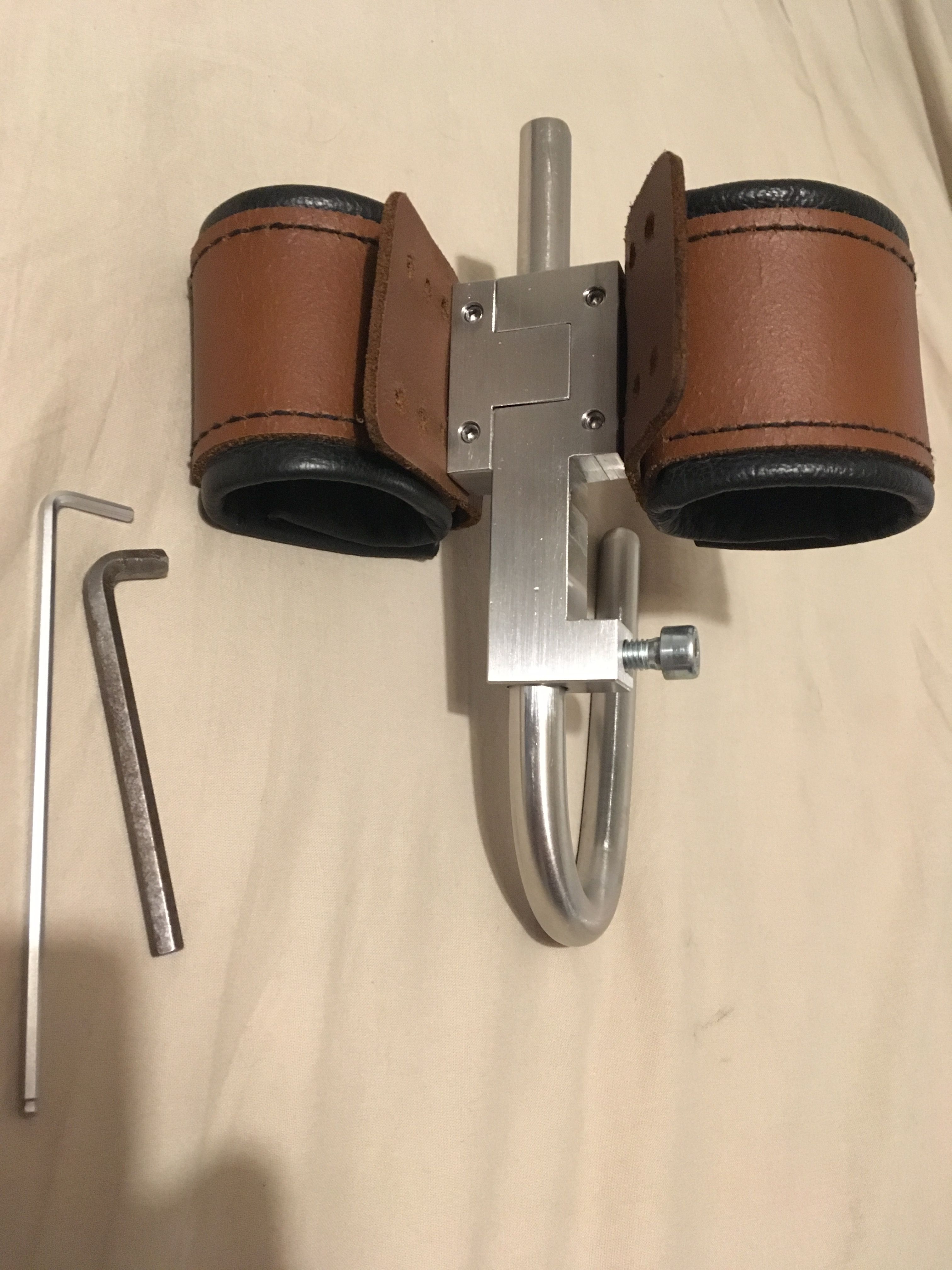 My idea is that your hands are Tied on your back by the coffs, that are connected to a analhook to hold them in place over your Butt. I have two keys for the Screw. One i will frezze to a rope and hang it on the ceiling. The other one, i will use to close the cuffs and drop it someware, were i can't reach it when i am tied.