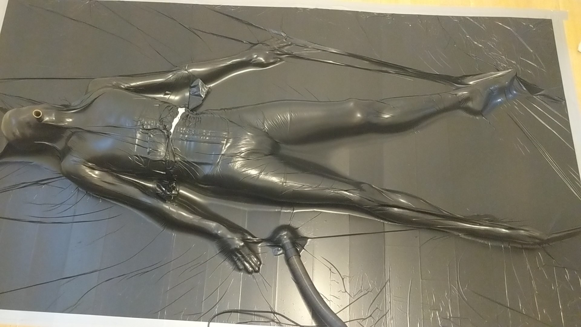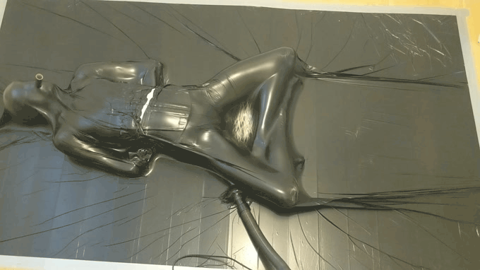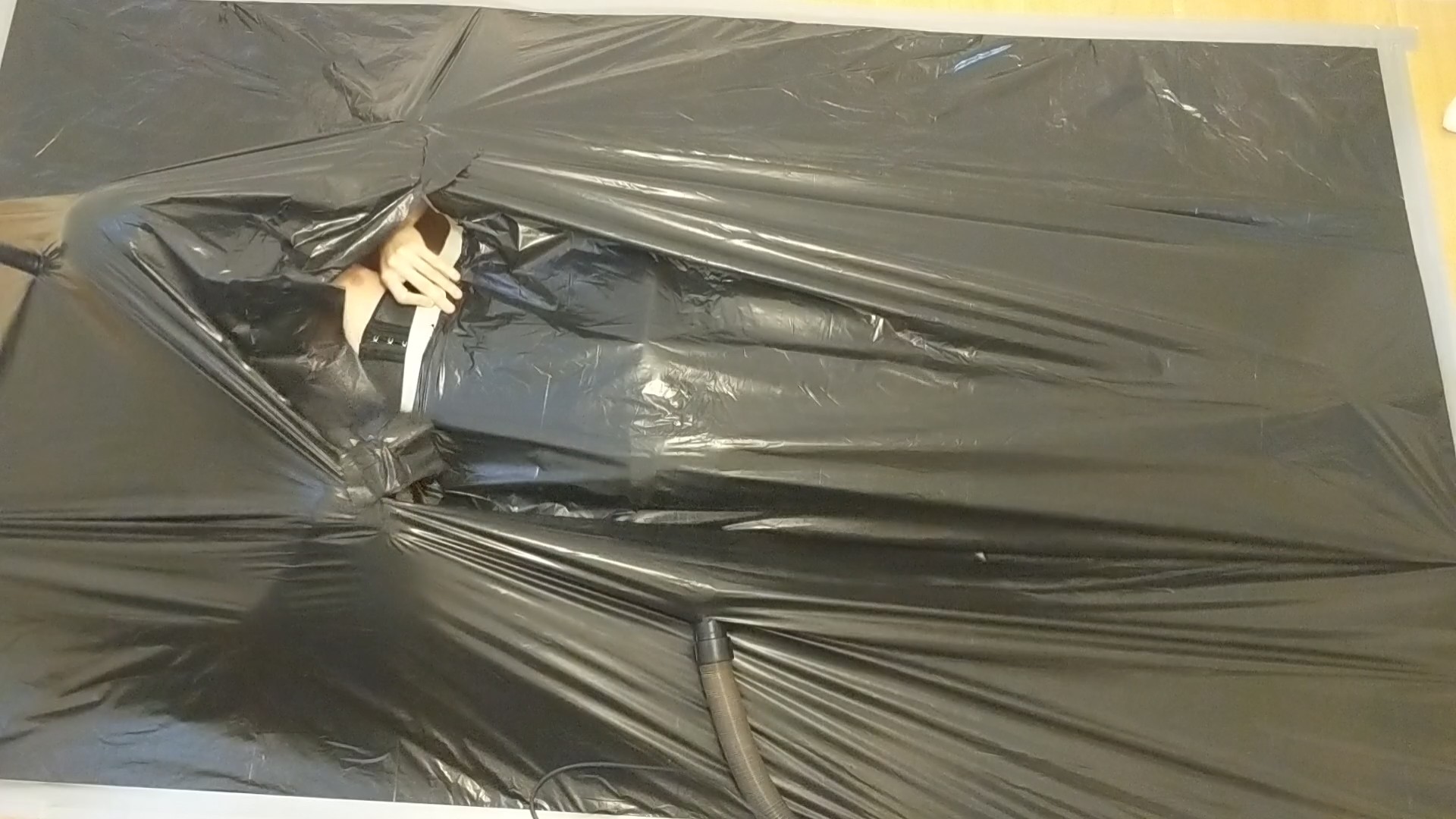 The advantage of using this plastic material is that it's a safety bonus for self vacuum bondage, I can just break out if I need to. At the same time it does make it feel a little less fun, just knowing that I can break out at any time if I really need to. But I still get that lovely constricted feeling, so it's still fun.