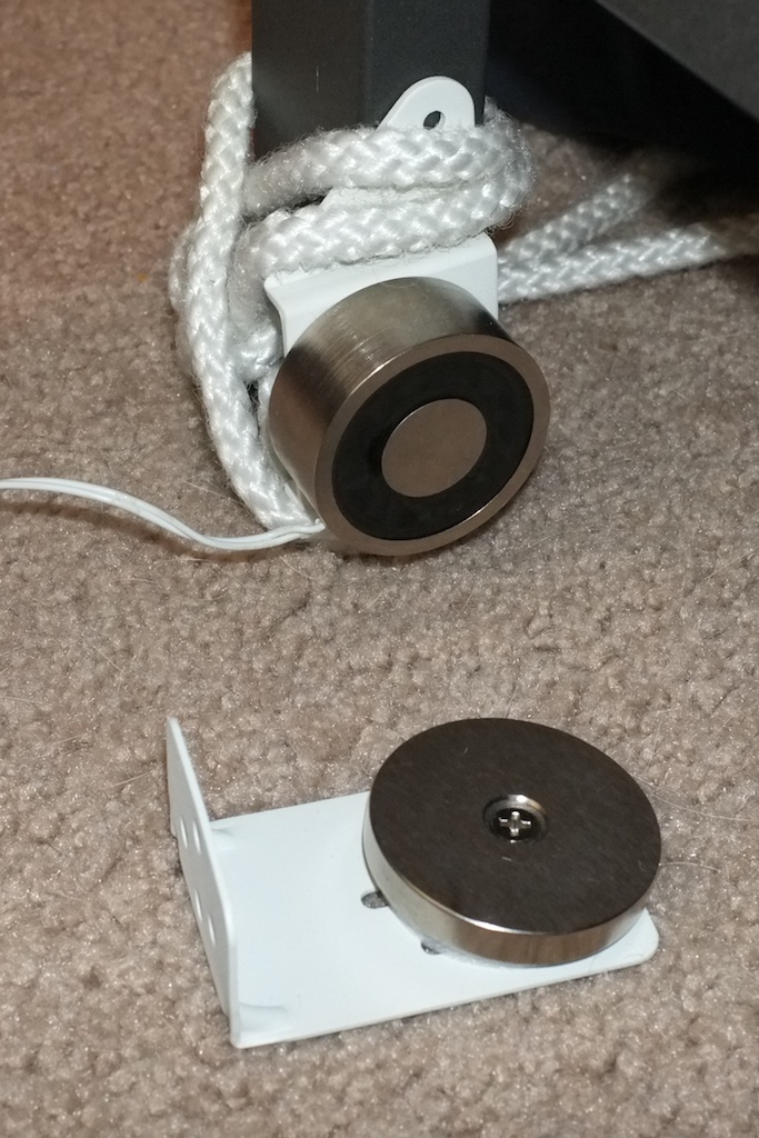 There is one gotcha with this magnet that I didn't think about when I ordered it. I had no idea what kind of connector it used. I could have just cut the connector off and soldered it to something, but at the time, I wasn't sure what I would ultimately be soldering it to. And it is nice to have a plug so I can disconnect it from whatever is controlling it.