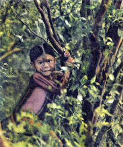 Both girls are clearly not bound, also, nothing about "bondage" was mentioned on the related pages or in the image metadata, but their poses (and tattoos of the tribe girl) suggest that they might be tied up.