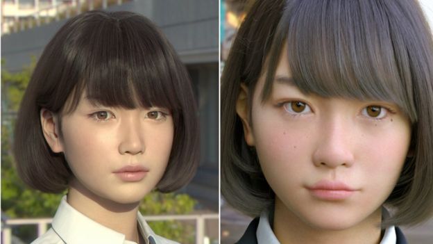 This images shows how much more realistic Saya has become  _91509746_befunkycollage.jpg    - I would easily have identified the digital nature of the left-hand image, but struggled to tell the latest was not real.