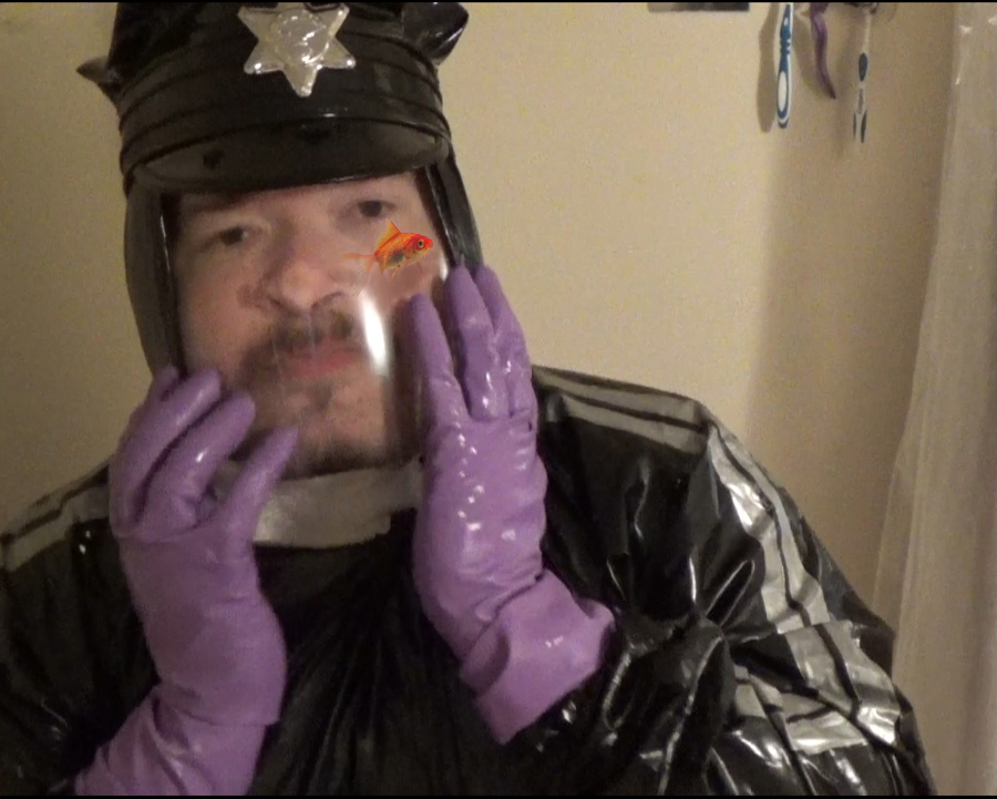A different set that I did wearing a plastic sauna suit with the hood pulled up and over the bag and the shower hose was run through the hood and taped into the bag and sealed and filled.