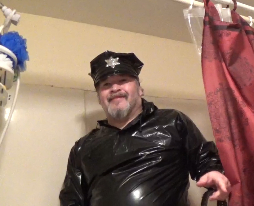 This set shows my wife and I enjoying ourselves in the shower with a drown hood I made out of an old inflatable childs toy that she is wearing and I am wearing a thicker, super clear, super soft vinyl bag which is impossible to tear by hand. It did have a hole in the top of this to allow us to enjoy what we were doing a bit more than actually sealing the shower hose to the bag. The top of the white/blue drown hood has a 4 inch hole in it as well which allowed my wifes hood to flood with water just as she was going to eventually pull me directly under the shower spray and allow my bag to fill with water. We both really found this to be an erotic day for us.