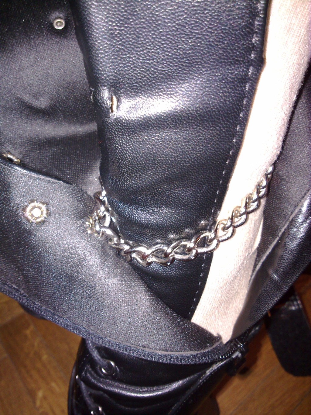 - Wrap around the ankle a short flat chain, put on the boot, and tie the ends of the chain on the padlock, inside the boot.