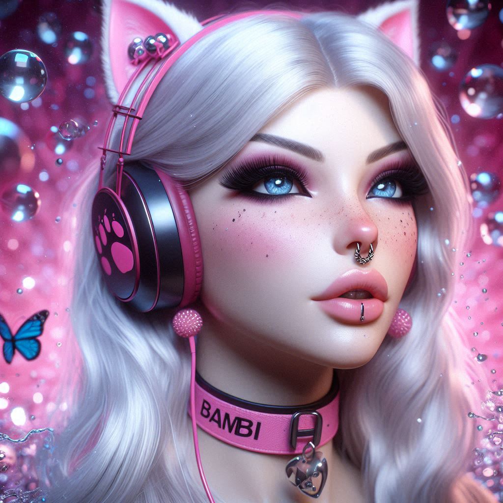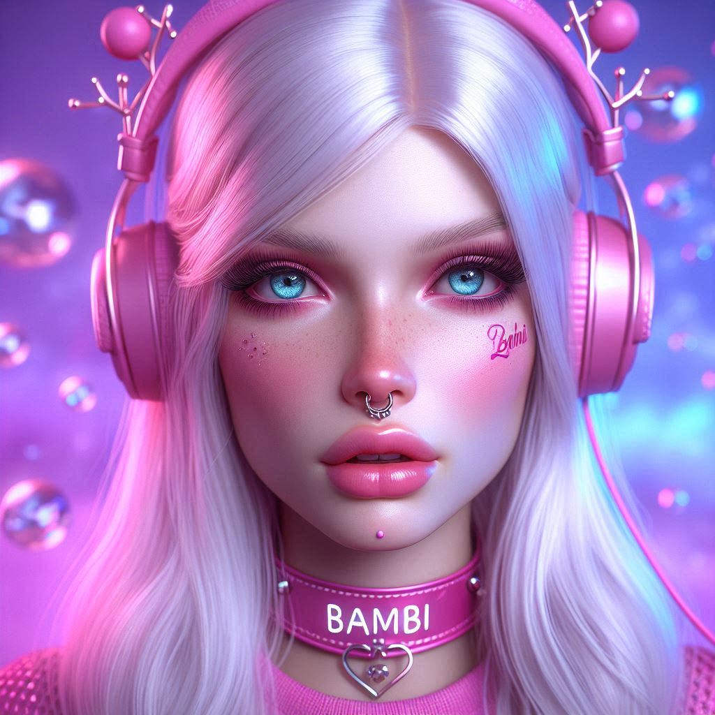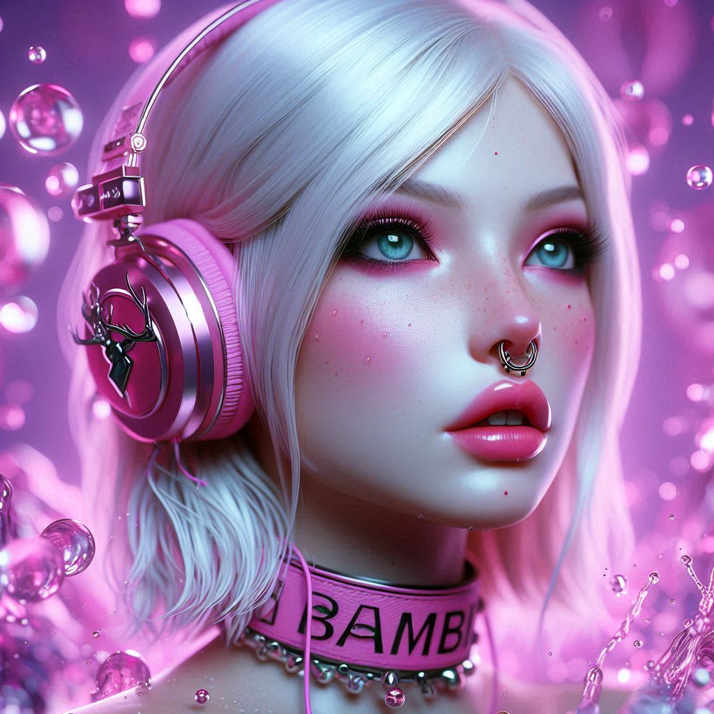 (02 Dec 2024, 11:16 )BambiJaseyBailey Wrote: photorealistic platinum-blonde Queen (give her blue eyes, and give her a large silver septum nose ring) wearing headphones and wearing collar with "JASEY" written on it in pink. Make it all mostly pink and purple and add a black gothic theme. Give her cow ears. Her top should be a crop-top black shirt. Nice! ^^ Thank you for sharing your Prompt, your Bambis are the cutest, especially with your name on the collar