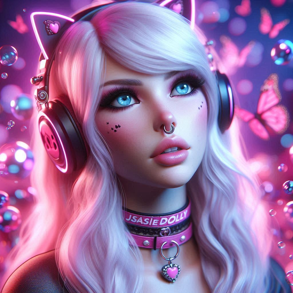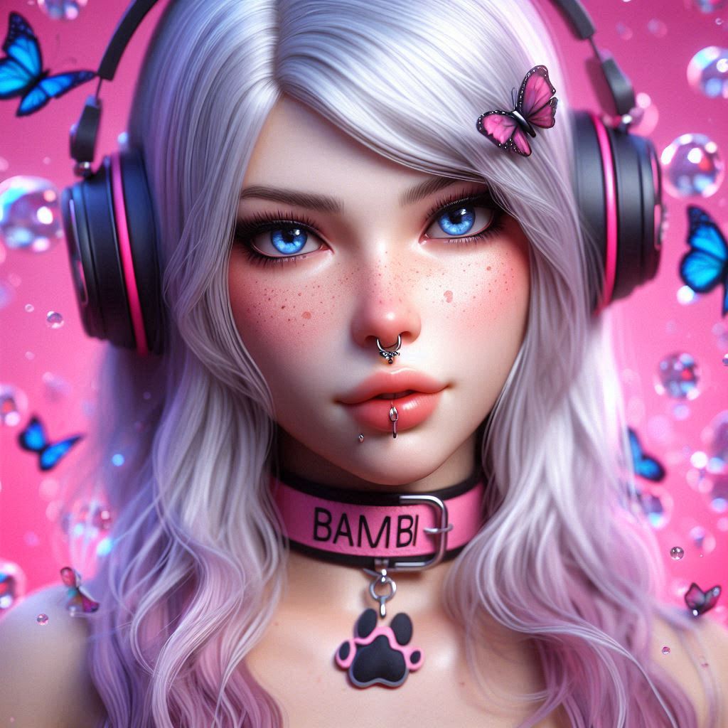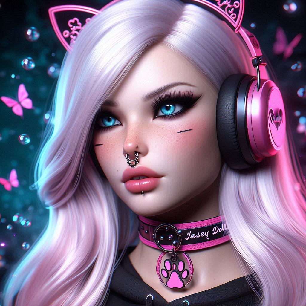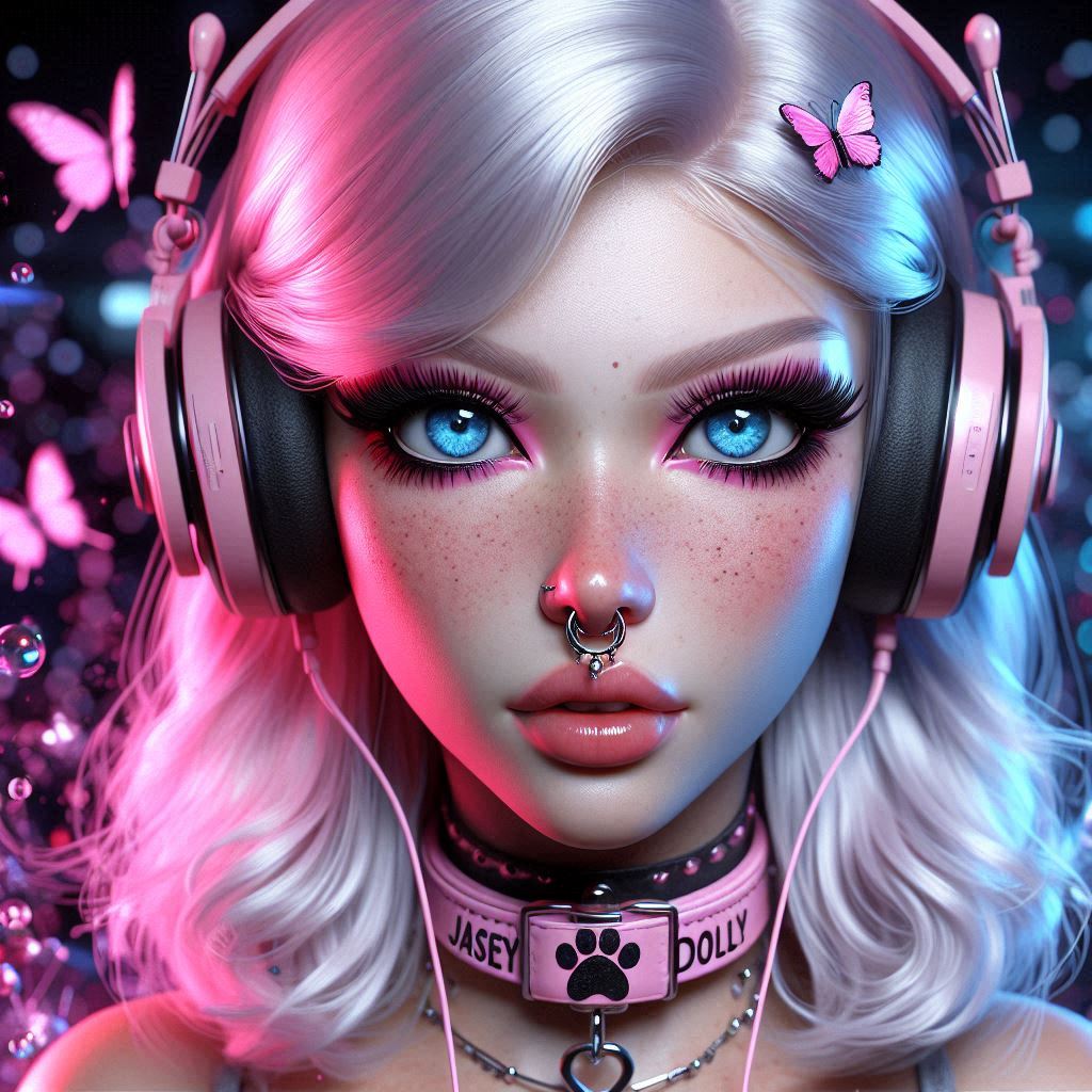 (02 Dec 2024, 11:16 )BambiJaseyBailey Wrote: photorealistic platinum-blonde Queen (give her blue eyes, and give her a large silver septum nose ring) wearing headphones and wearing collar with "JASEY" written on it in pink. Make it all mostly pink and purple and add a black gothic theme. Give her cow ears. Her top should be a crop-top black shirt. Nice! ^^ Thank you for sharing your Prompt, your Bambis are the cutest, especially with your name on the collar