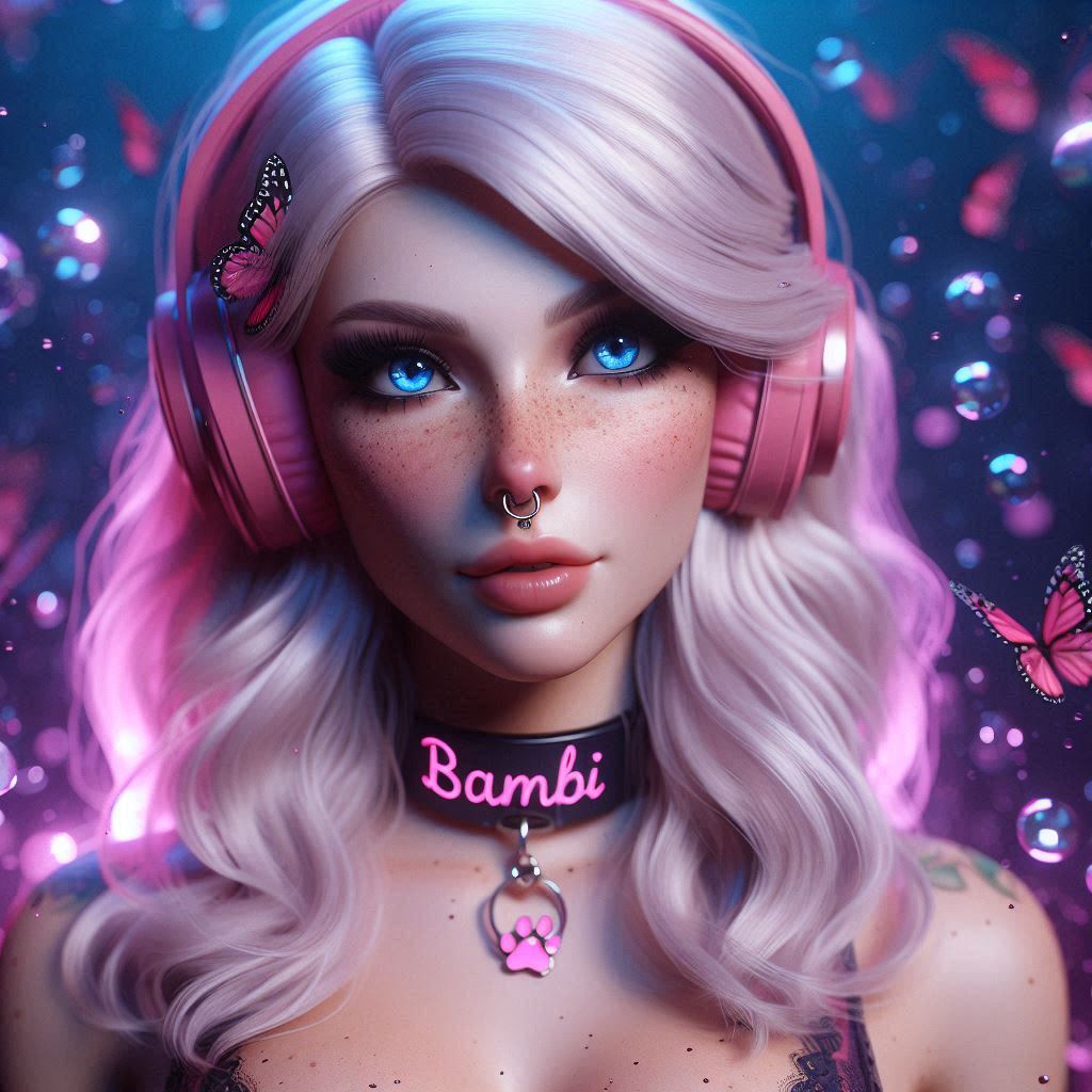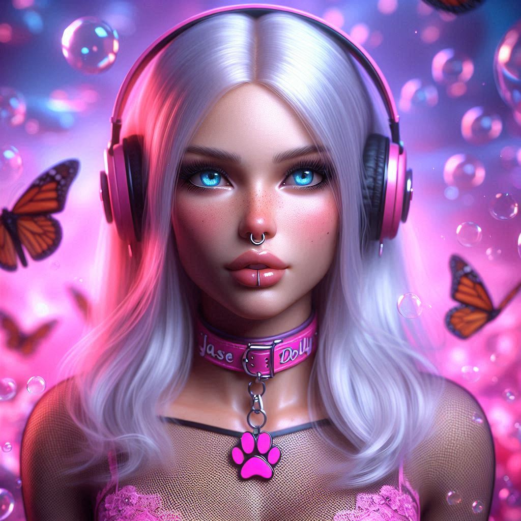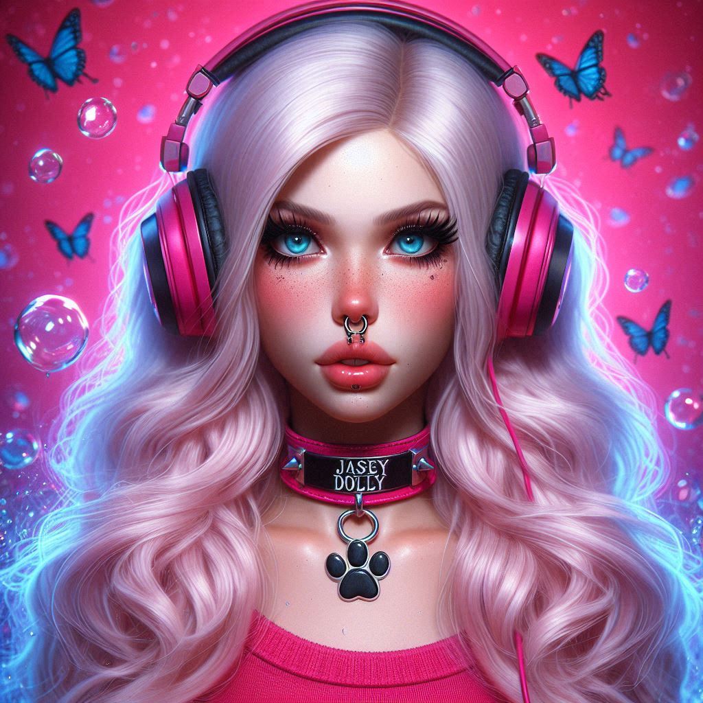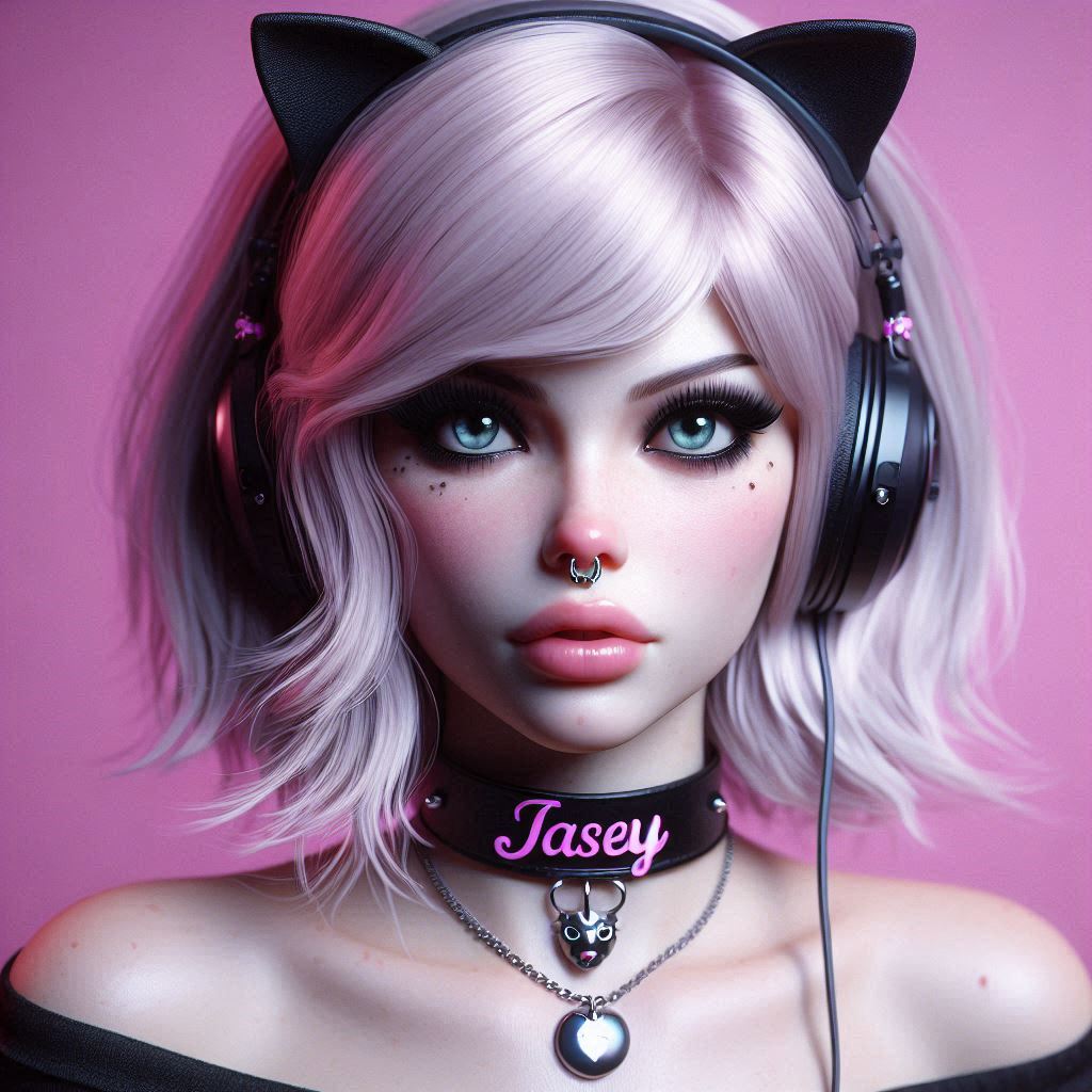 (02 Dec 2024, 11:16 )BambiJaseyBailey Wrote: photorealistic platinum-blonde Queen (give her blue eyes, and give her a large silver septum nose ring) wearing headphones and wearing collar with "JASEY" written on it in pink. Make it all mostly pink and purple and add a black gothic theme. Give her cow ears. Her top should be a crop-top black shirt.