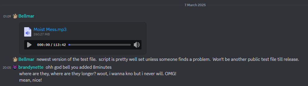 (You have to join bellmars server on your own bambi, this is just the MP3 link not an invite & will be irrelevant once bellmar uploads the next version. hurry up & leave your feedback)