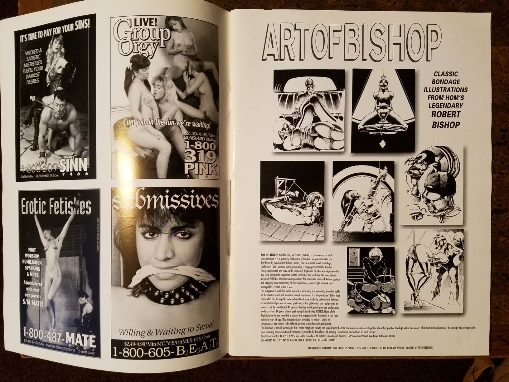 New member here. I know this thread has been dormant for a while but I'm hoping someone here can help me. I have a copy of Bishop on Bondage Number 1, the issue that says something like, "illustrations perfect for framing and hanging." I think HOM intentionally used weak glue so that the pages could be removed easily. Anyway, All my pages have detached and I can't tell if I'm missing any. Could I ask that someone post scans of the page order either here or message me directly? I looked through the images posted and they don't appear to be in any specific order, at least to my eyes. Thanks in advance.