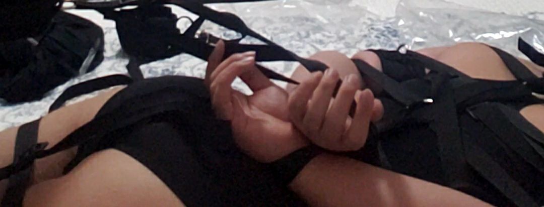 Then after strapping your head in you are on a bit of a time crunch to tighten the shoulder straps as hogtieing yourself by the head is not pleasant, tighten as much as possible and squeeze your arms and wiggle around to tighten more, don't however expect it to be as tight as the photos on bondage webbing, you can't do that unless you are very very strong you won't be able to overcome the resistance on your thighs and ankles to bending. The final nail is that in the image the buckles are past the area your hands can reach while armbindered. No way without external help which I find a bit dishonest of BW/Alex. If you can prove me wrong you get to shame me for it but otherwise that is impossible.