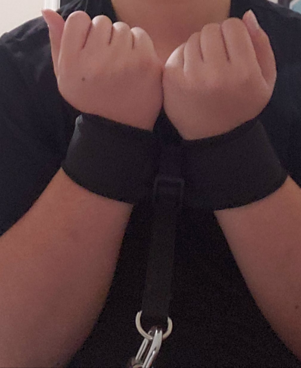 After this point it is really just about getting into the wrist restraints which I have chronically undersized. It wasn't comfortable or that restrictive but that is the price of not measuring properly. Hopefully with a properly sized on it just tightens and the hogtie is complete.
