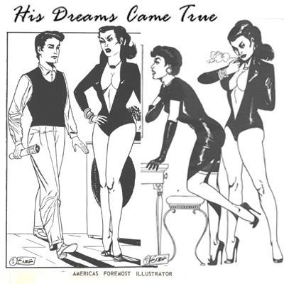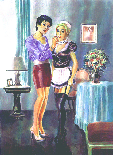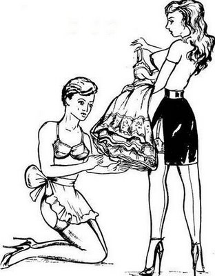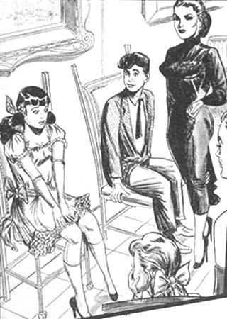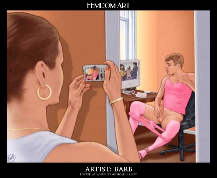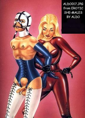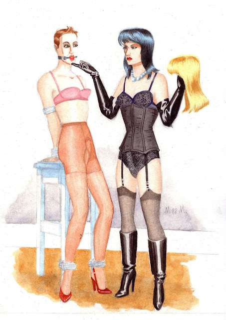 Bound men in feminine clothes and femdom fetish art