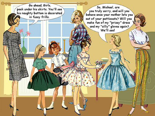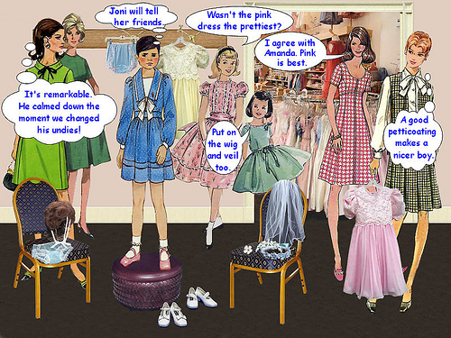 Funny, but not that long ago boys and girls were dressed in the same clothes till 10 or something. Dresses, stockings, bows, suspenders, bras, shoes...