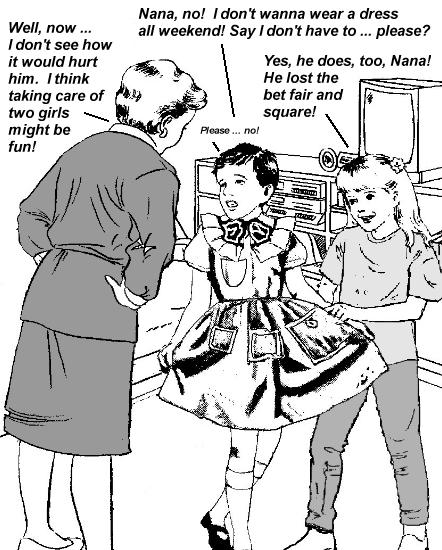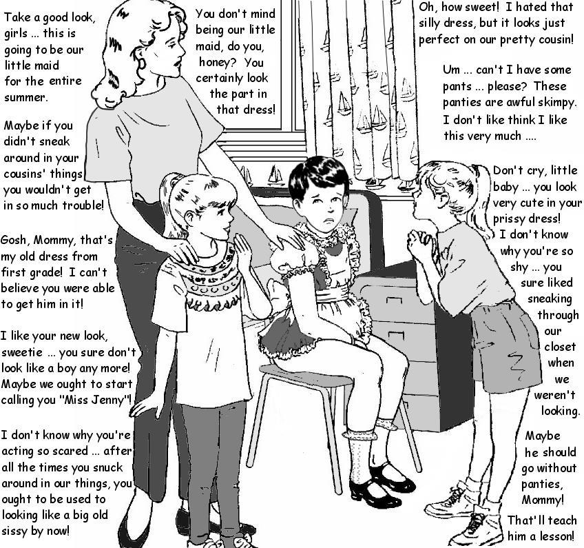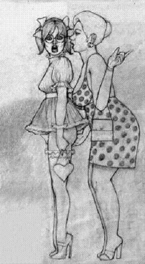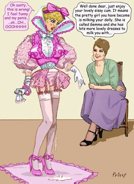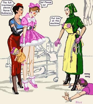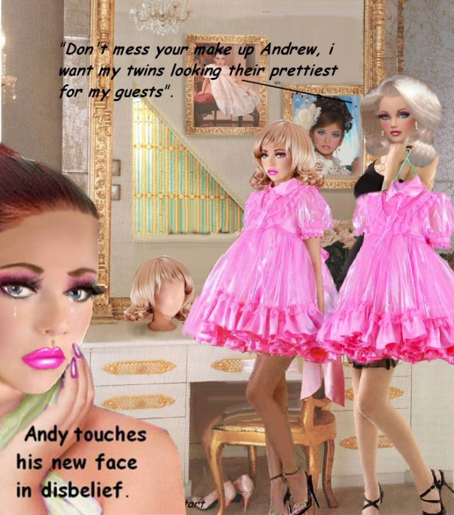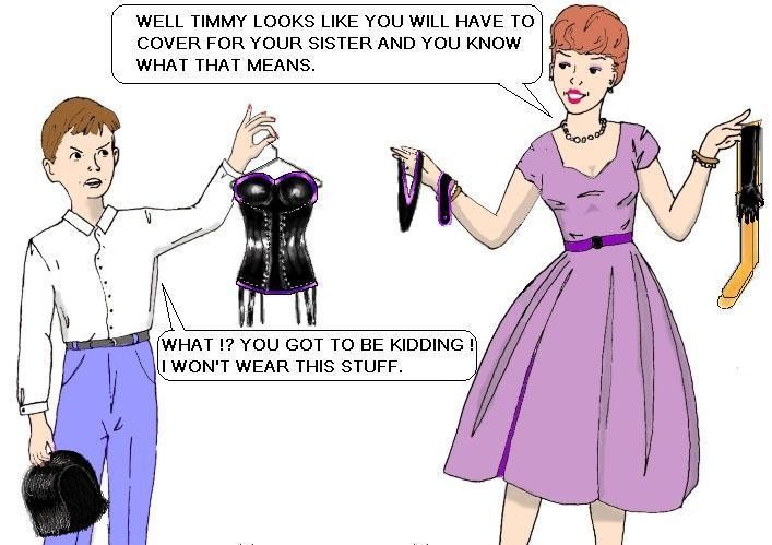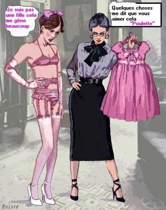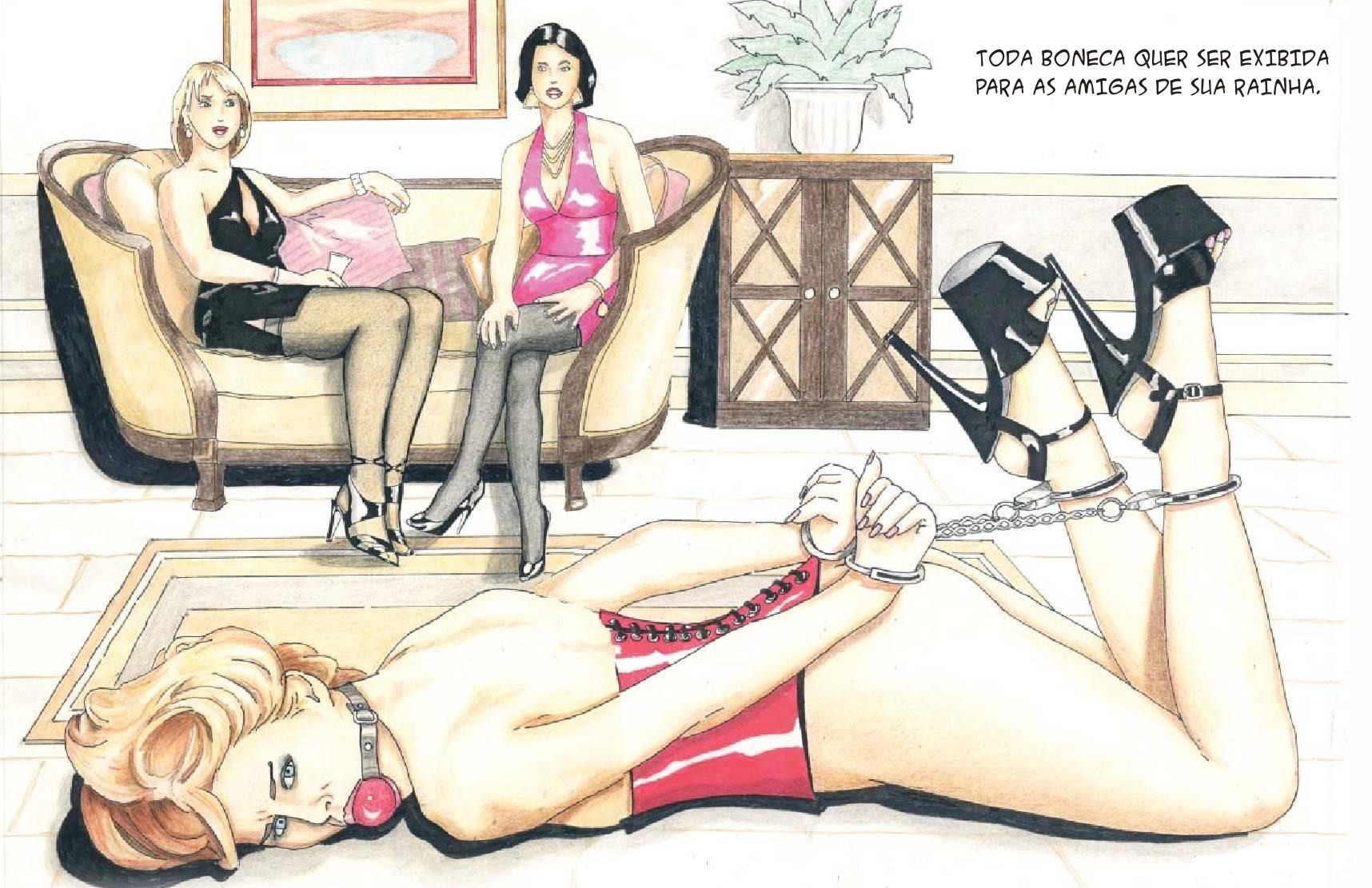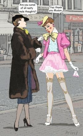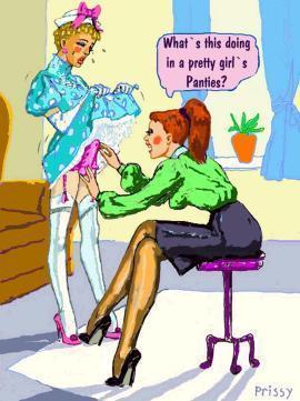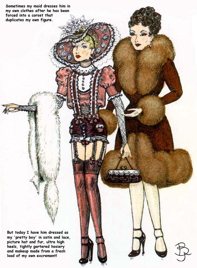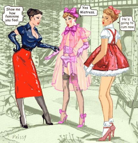 Bound men in feminine clothes and femdom fetish art