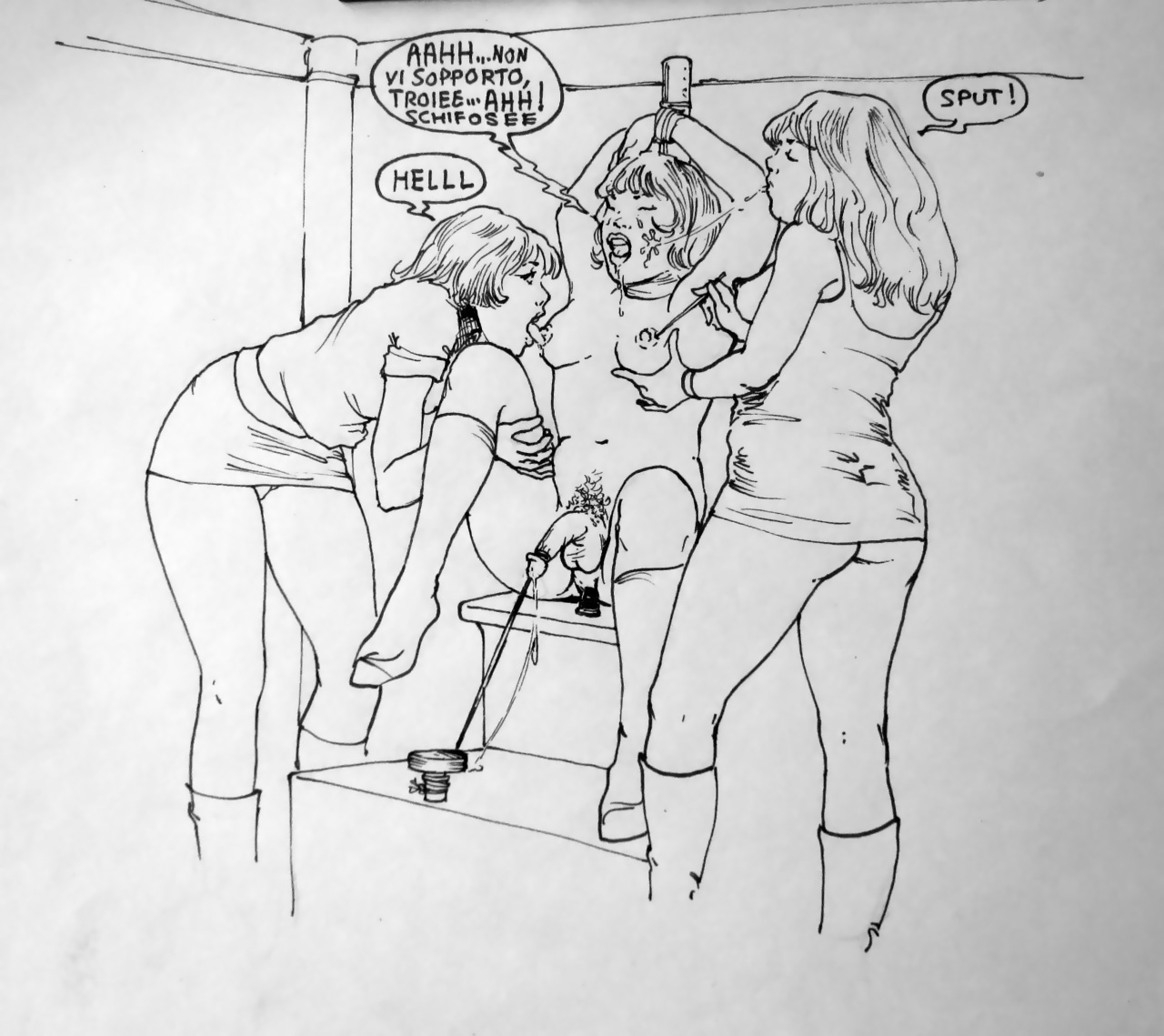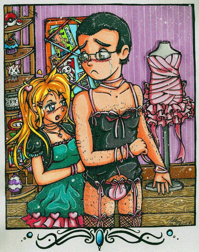 Bound men in feminine clothes and femdom fetish art