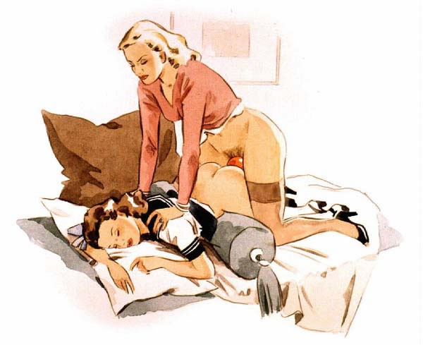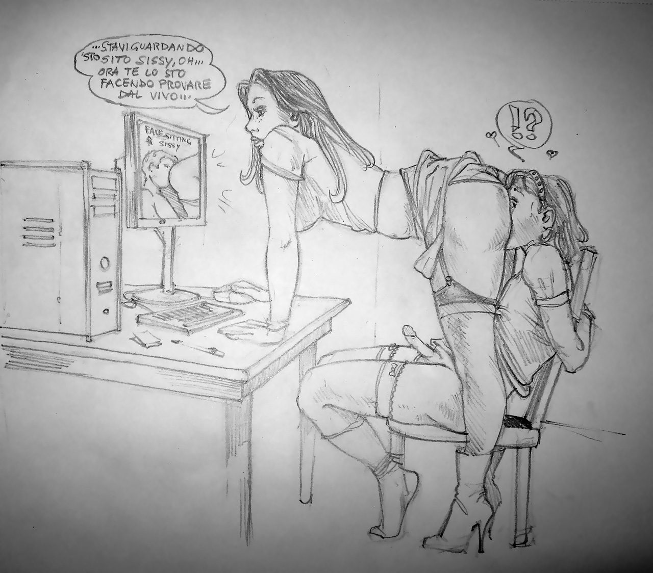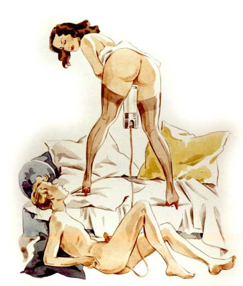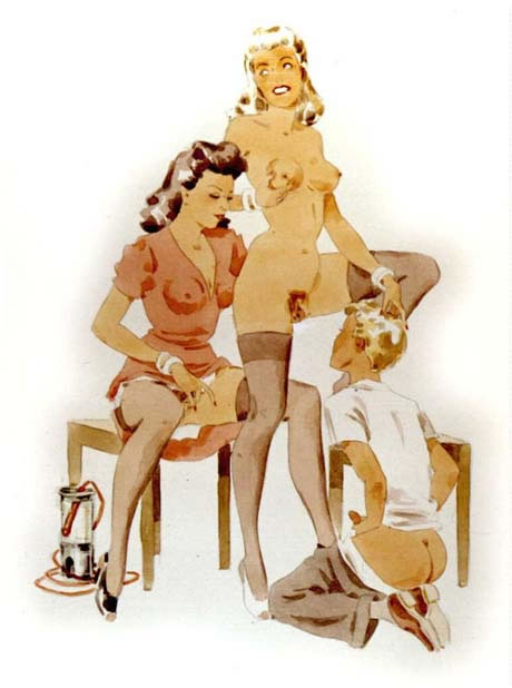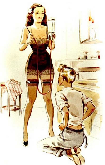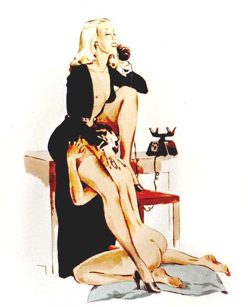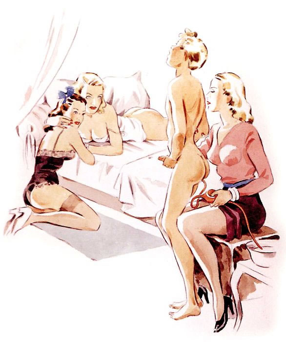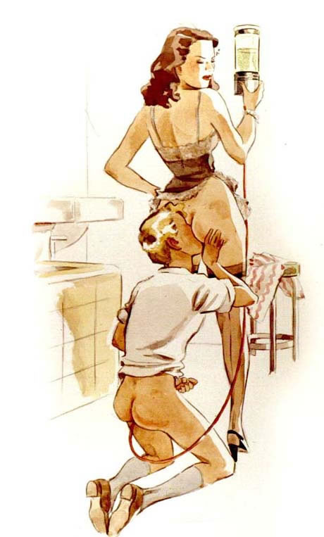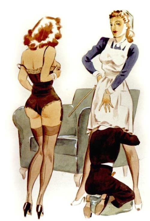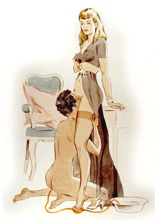 Bound men in feminine clothes and femdom fetish art