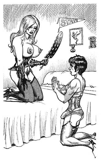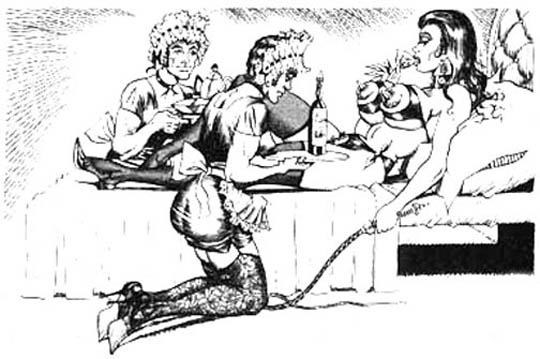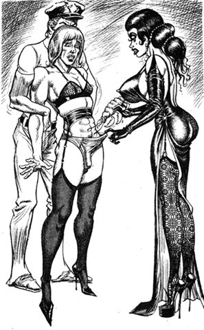 Bound men in feminine clothes and femdom fetish art
