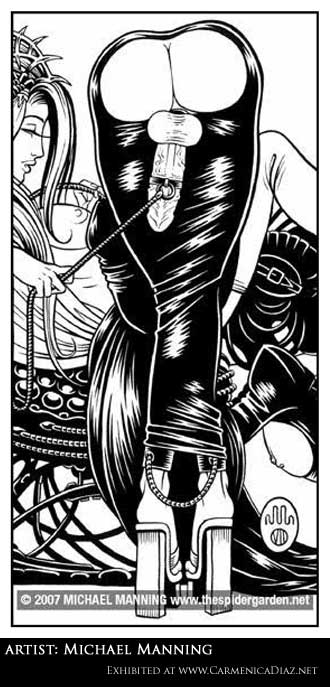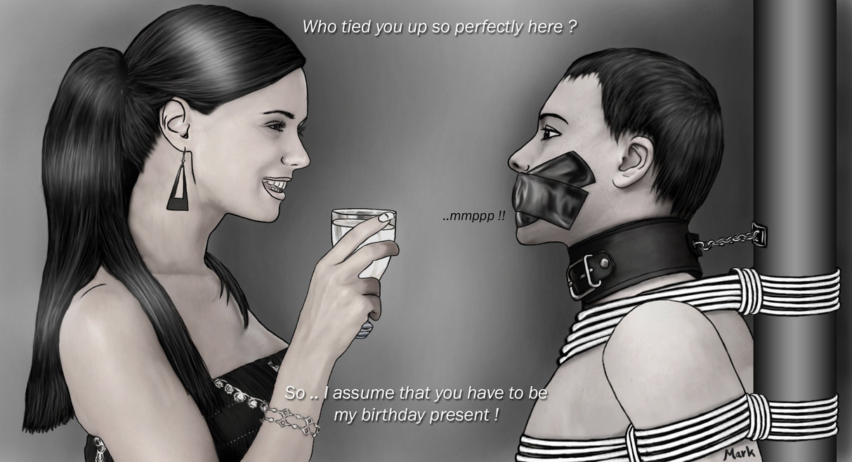 Bound men in feminine clothes and femdom fetish art