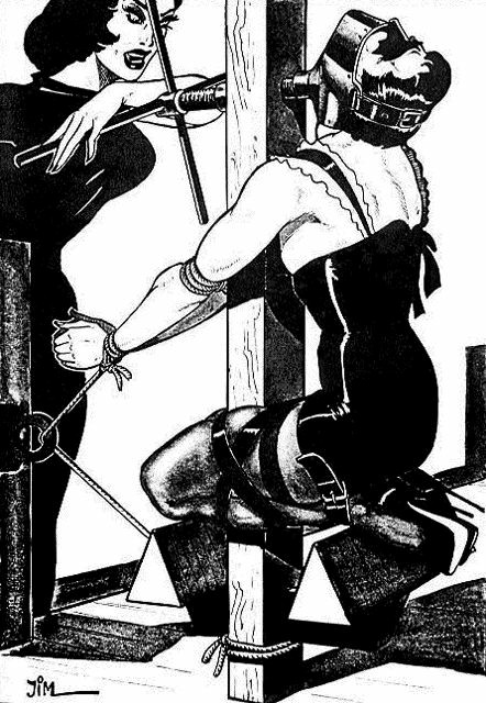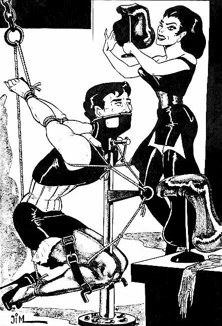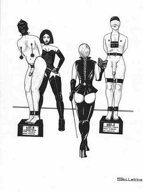 Bound men in feminine clothes and femdom fetish art