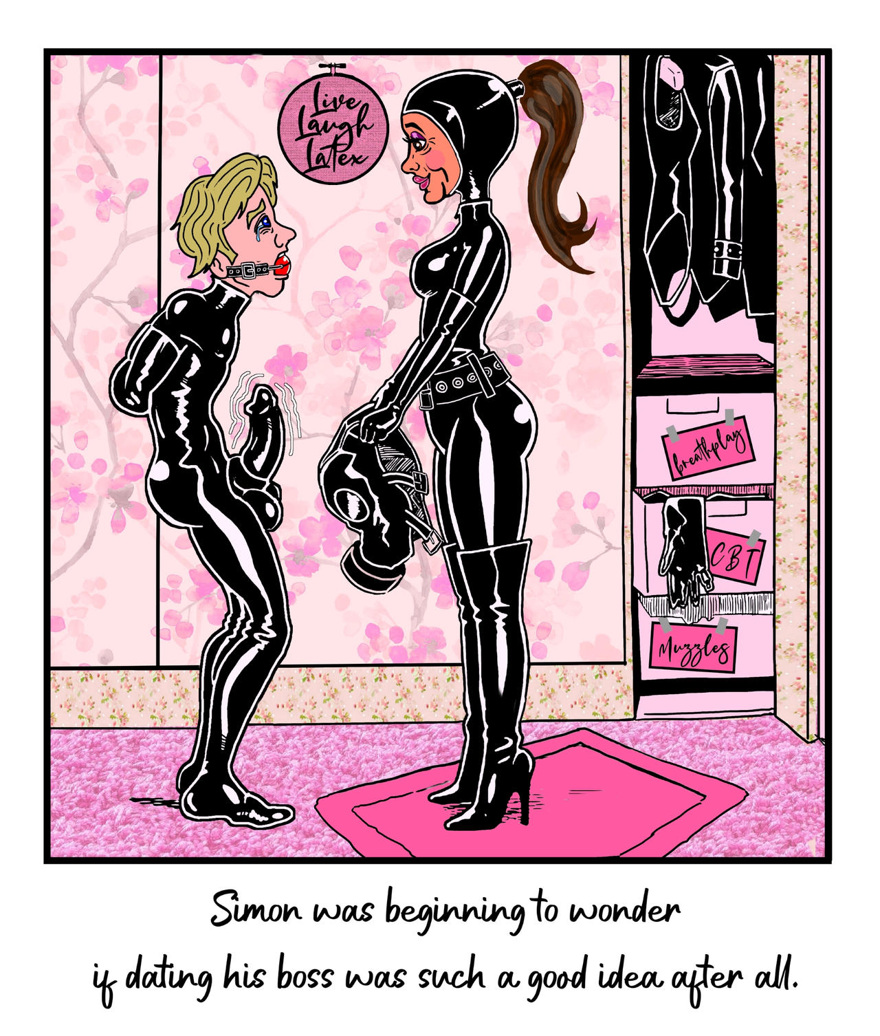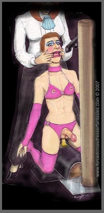 Bound men in feminine clothes and femdom fetish art