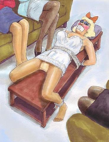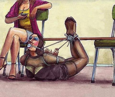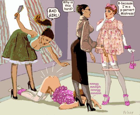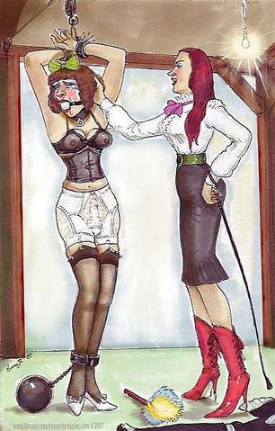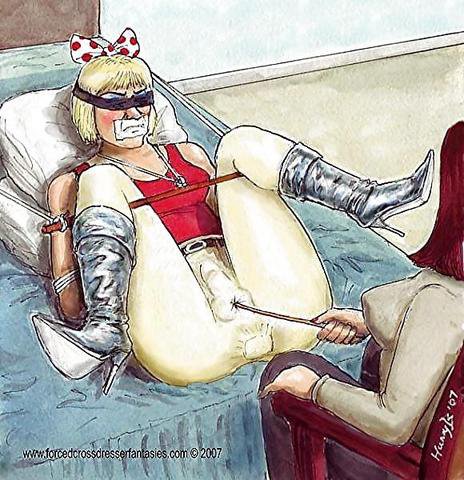 Bound men in feminine clothes and femdom fetish art