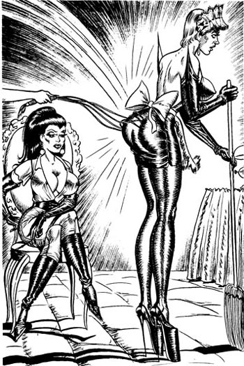 Bound men in feminine clothes and femdom fetish art