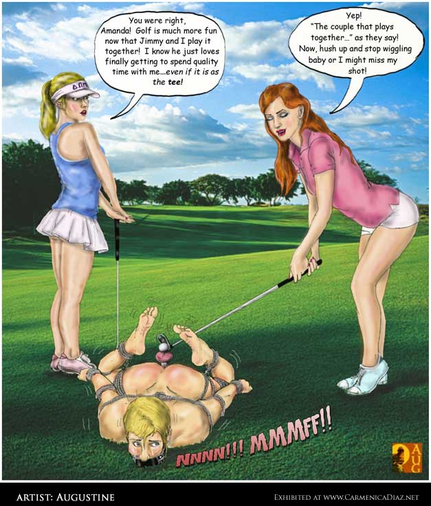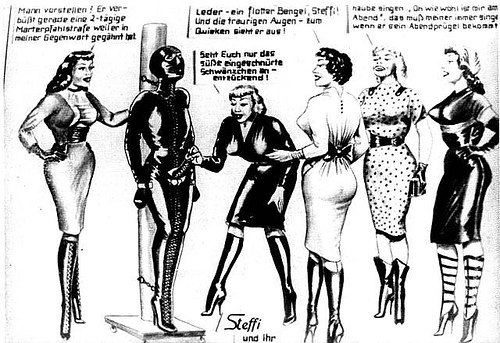 Bound men in feminine clothes and femdom fetish art