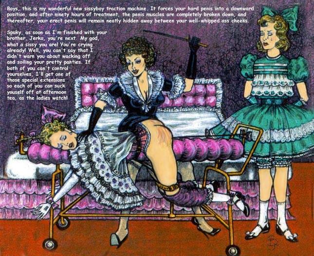 Bound men in feminine clothes and femdom fetish art