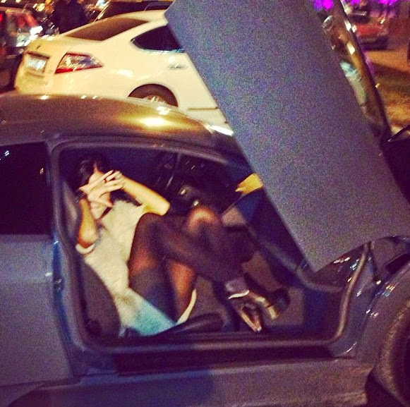 Long hair, black fishnet pantyhose and open-toe shoes:
