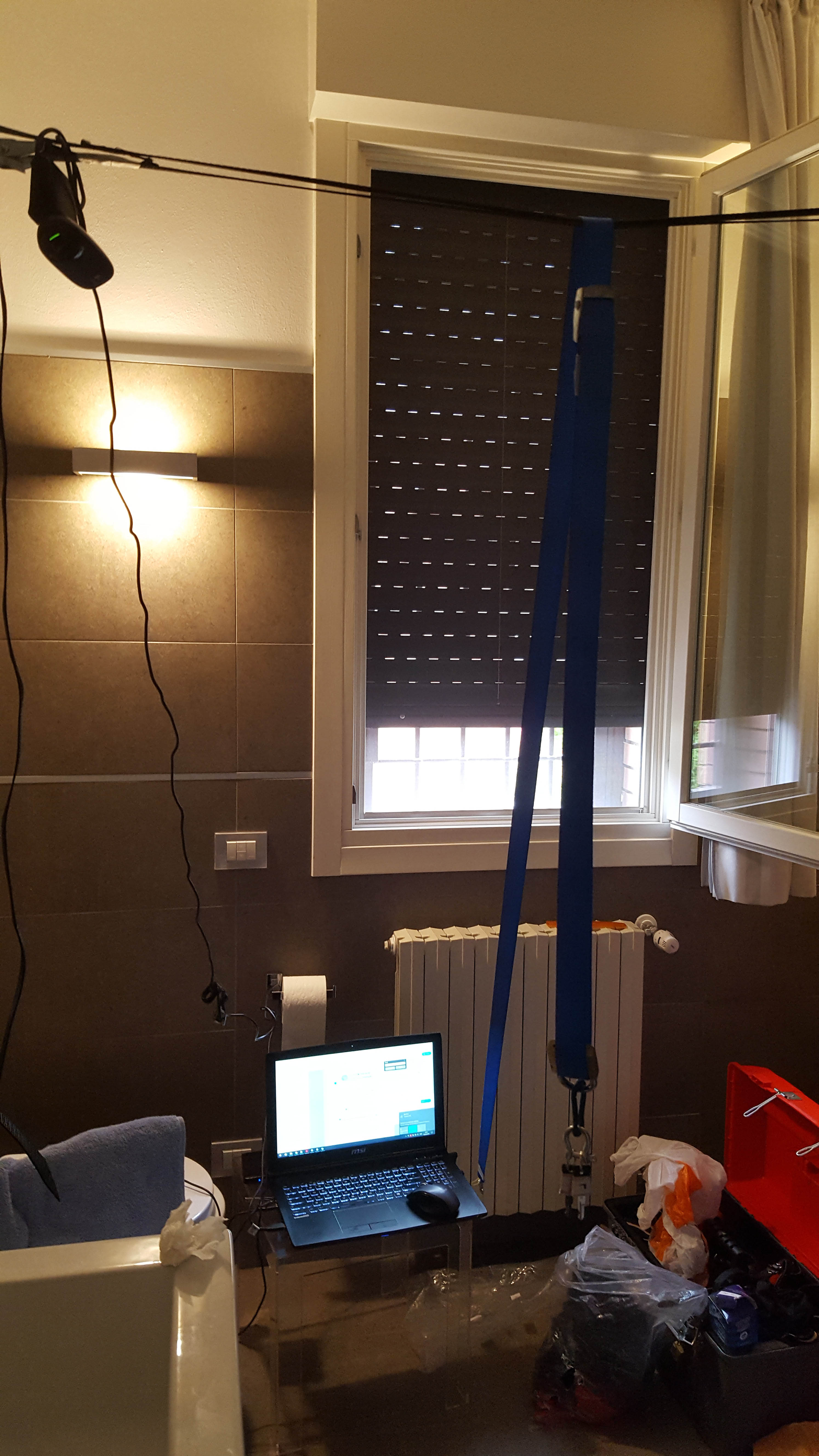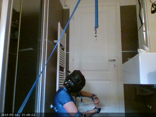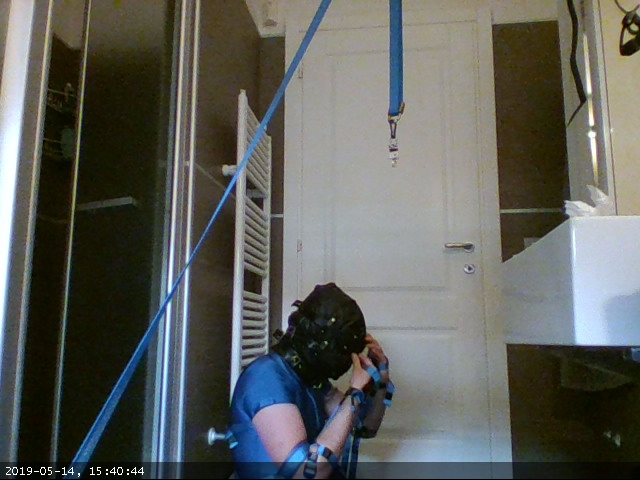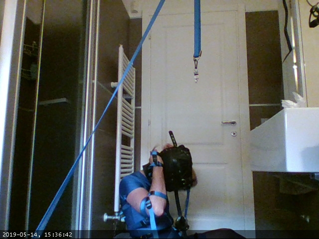 I also tried a new camera setup: using this software I took pictures every second from two different webcams: one integrated in my laptop and another dangling from an overhead strap, the same one that keeps the primary keys out of reach.