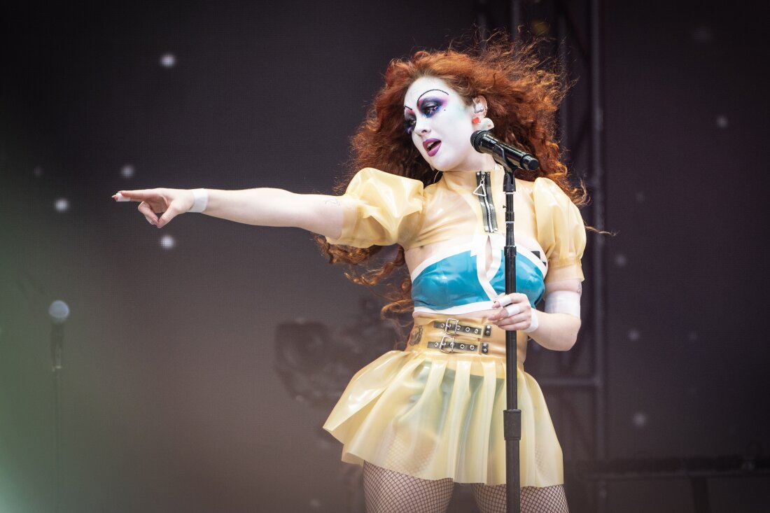 Chappel Roan, she also has a nice taste for suntan fishnets worn over super-shimmery sheers a la Taylor Swift.
