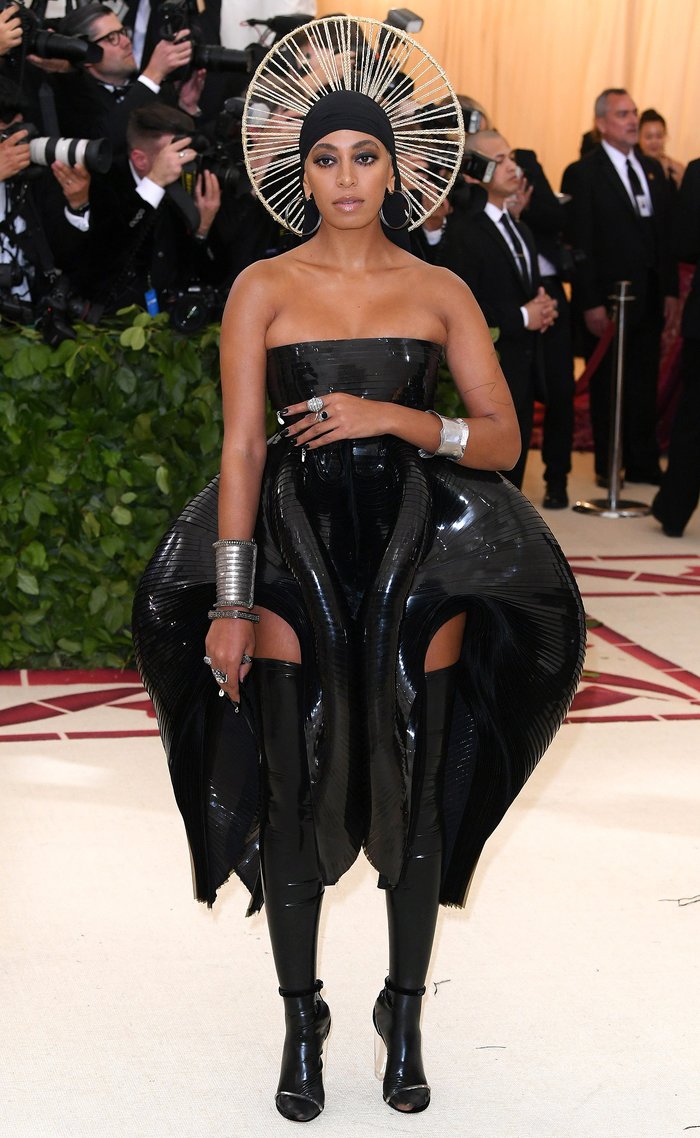Solange Knowles at the Met Gala yesterday. Actually I think the dress is probably vinyl rather than rubber but it's an intriguing look anyway.