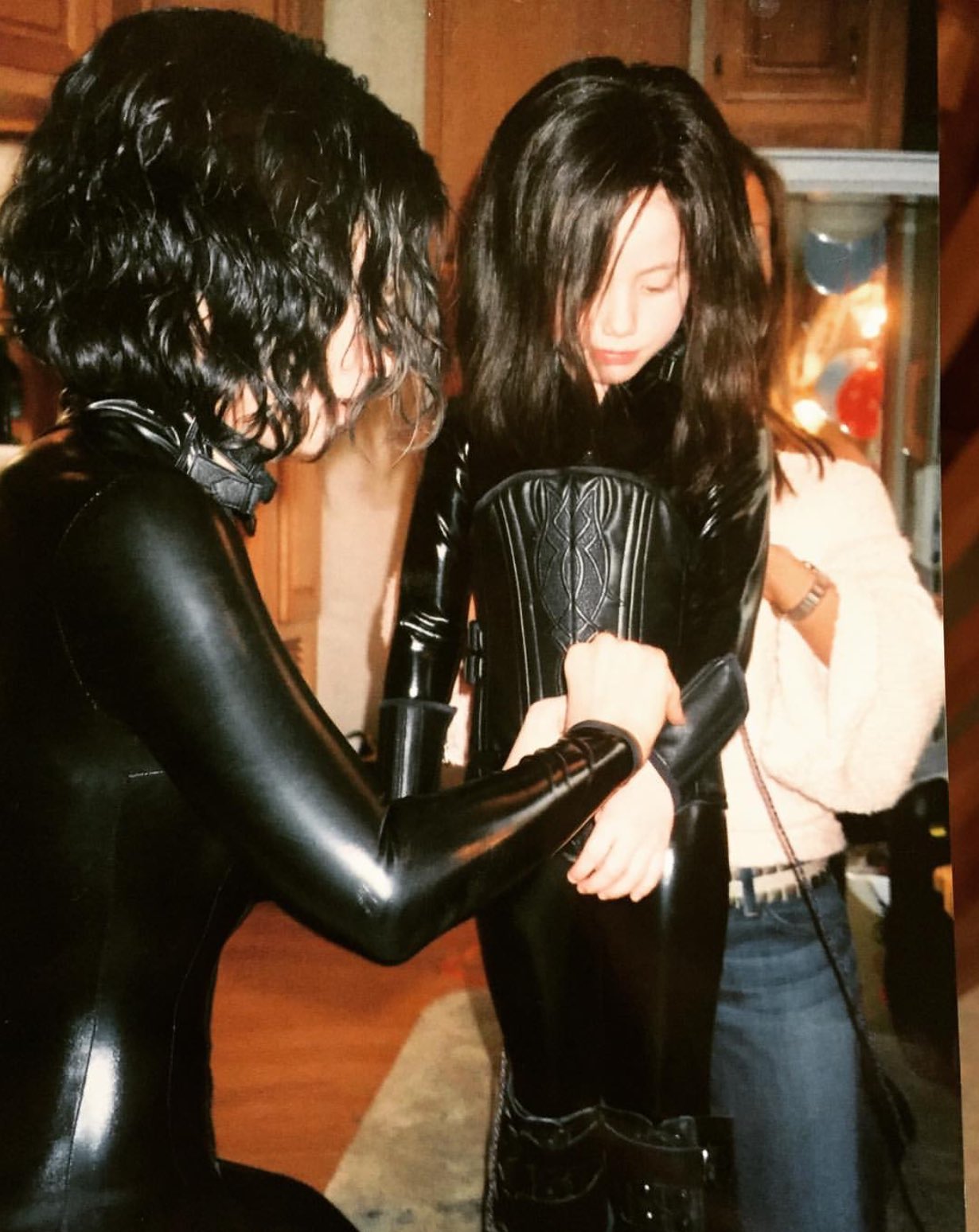 At first I thought that both mother and daughter (Kate and Lily Beckinsale) are wearing latex catsuits, but when I looked closer - nah, PVC coated lycra.