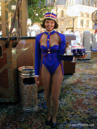 Quote:The typical cocktail waitress uniform in Reno usually starts with a very short skirt. The Peppermill is the only casino that still has a leotard basis for the uniform as you can see in the above photos. Note that this is the Peppermill in Reno, not Las Vegas.
