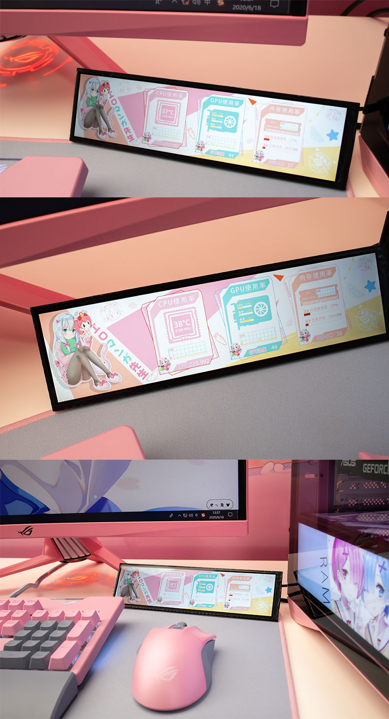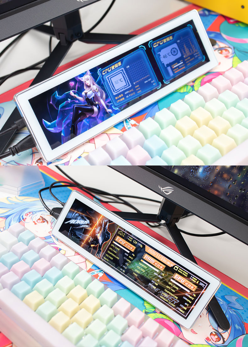 Never thought about such thing, but Ali sent me a recommendation with a photo (anime girls in latex 😋) I could not miss, so I clicked. It turned out to be an external monitor of an unusual ratio: various sizes, resolutions, with or without touch screen, etc. The idea is to place it underneath your main monitor (horizontally), or to the side of the main monitor (vertically, e.g for chats, mails), or connect it to a Pi-like microcomputer. Can be useful for gamers, or to display system load. Or as a picture frame. I have lots of ideas. So... thinking....