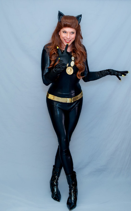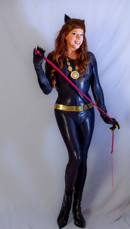 Classic Catwoman cosplay. I very much like this, esp the Cat Gun (which doesn't get a lot of love generally).