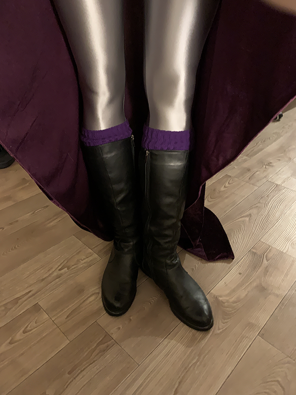Given that her rank insignia are those of a commissioned officer from the 2260s and she's holding a Type-2 hand phaser from the same period she should know better than to have bare legs. Get some tights on!