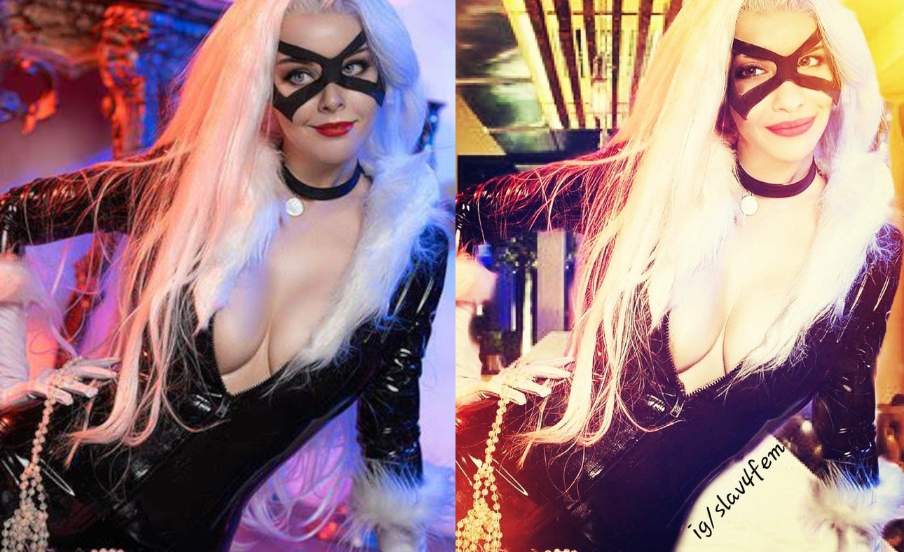 Quote: As a boy I always wanted to be Catwoman. Except that's not DC's Catwoman, it's Marvel's Black Cat. And specifically it's a cosplay model called Helly Valentine's 'Black Cat', this pic mirrored, then given a new background and a bit of a photoshop. I've reported him, we'll see what happens. He's also posted a second costume. Quote:As you all liked my last crossplay so much here is me as Black Widow..my wife does my makeup btw I'm 95% sure it's another model, Captain Kaycee, but I haven't been able to find the exact photo yet. :negative: Quote:Unless I miss your point somewhere... On the left is the model Helly Valentine, on the right is what a guy claims is him crossplaying 😉